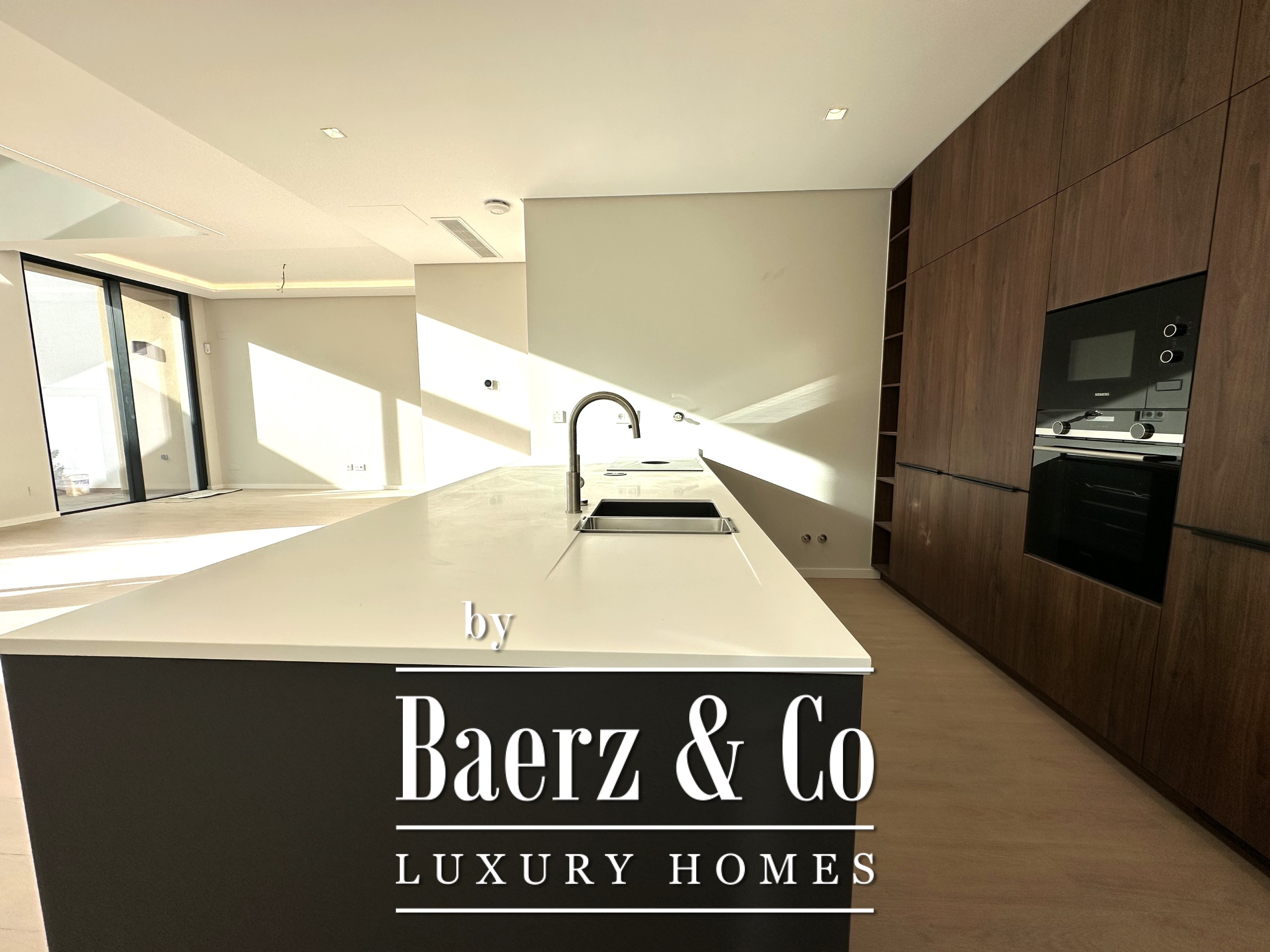 De architectonische lijn leidt naar een indrukwekkend dakterras van 106 m², perfect voor ontspannen buitenmomenten, aangevuld met een technische ruimte van 27 m². Het privézwembad, gelegen aan 124 m² terras, wordt omringd door weelderige tuinen en fruitbomen; een ontwerp gericht op ultieme rust. Geavanceerde smart home- en tuinoplossingen zorgen voor optimale controle en efficiëntie en onderstrepen het vooruitstrevende karakter van de villa. Voorzieningen als een privé garage van 72 m², een wasruimte van 8 m² en airconditioning verhogen het dagelijkse comfort, terwijl een energielabel A getuigt van de duurzame ambitie.