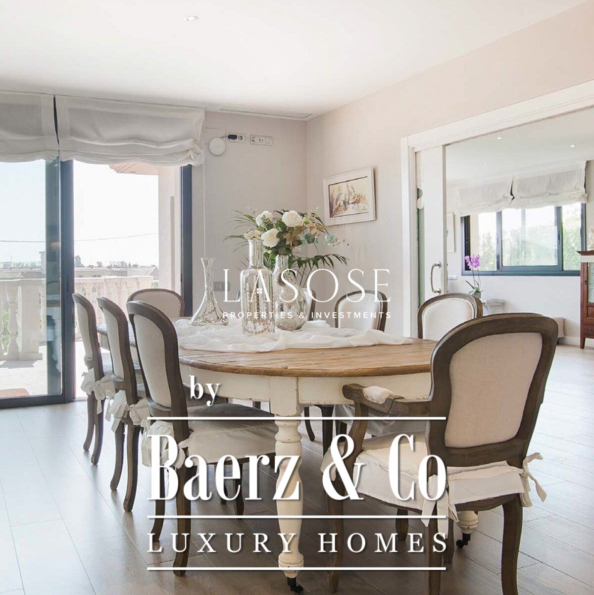 Deze luxe villa in Castelldefels beslaat 788 m² en biedt een uitzonderlijke combinatie van licht, ruimte en privacy in een centrale, maar rustige omgeving. De vier verdiepingen tellende woning, voltooid in 2015, is via een marmeren trap en een lift naadloos verbonden, wat een vloeiende beweging en architectonische samenhang door het hele huis waarborgt.
