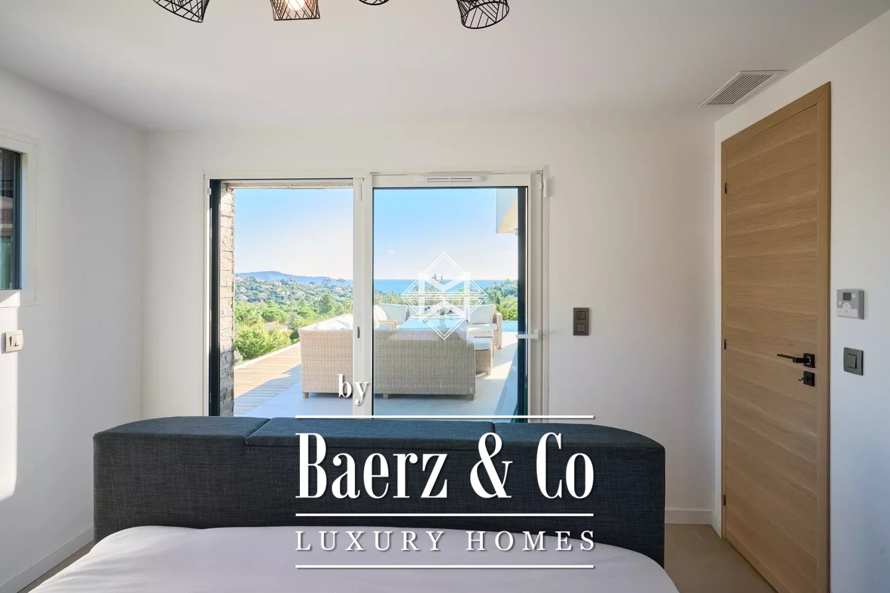 Villa Cavalaire-sur-Mer ligt rustig verscholen in een enclave van mediterrane heuvels en biedt een onbelemmerd uitzicht over het diepblauwe zeezicht. Voltooid in 2023 ontvouwt deze eigentijdse woning zich over 240 m² lichte, hoge ruimtes, ingericht met royale aluminium kozijnen die het ochtendlicht verwelkomen dankzij de oost-zuidoostelijke oriëntatie.