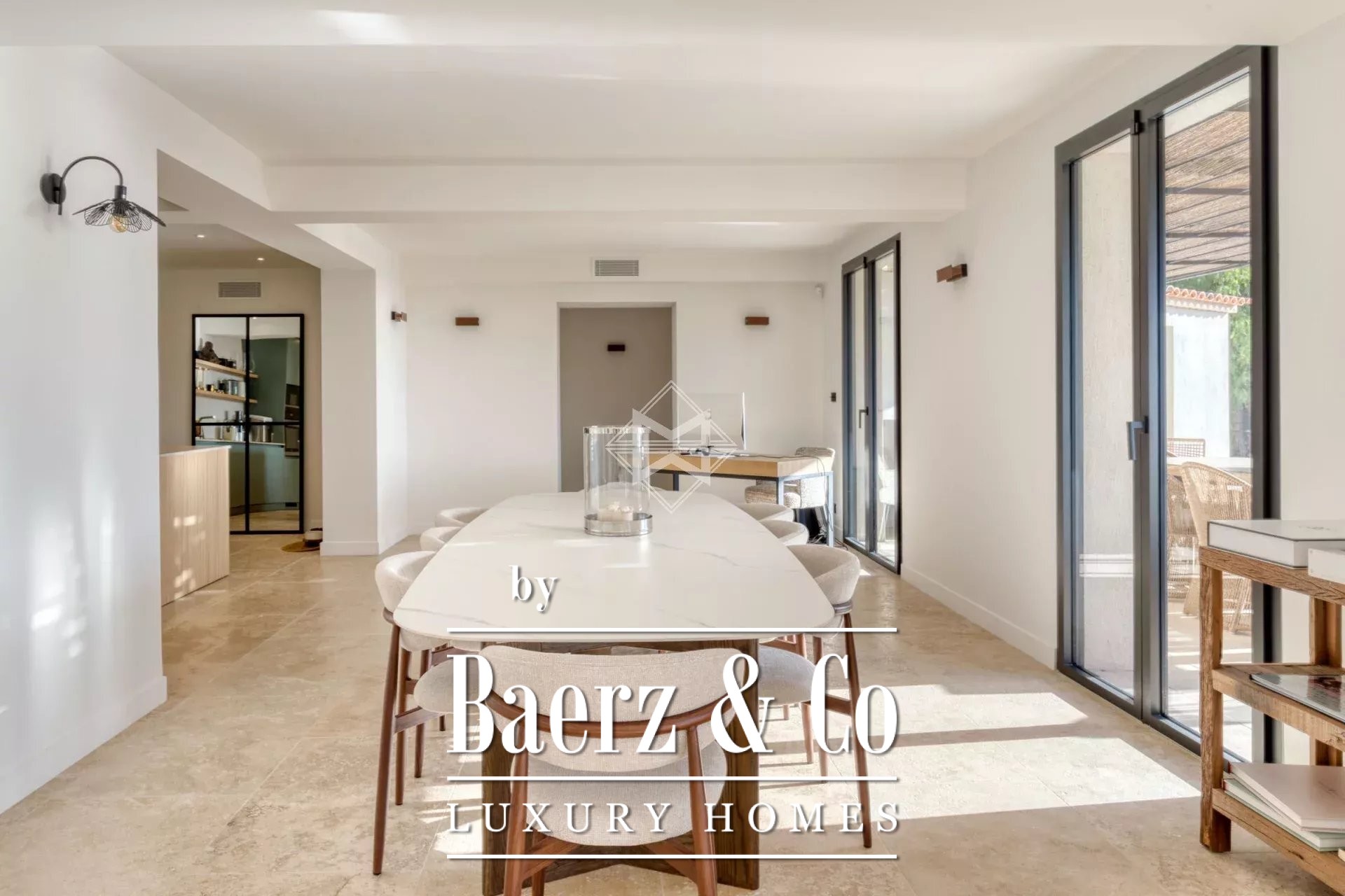 Deze luxe villa te koop in Cavalaire-sur-Mer biedt een zeldzame combinatie van rust, panoramisch uitzicht op zee en heuvels en directe toegang tot het lokale leven van de Franse Rivièra.