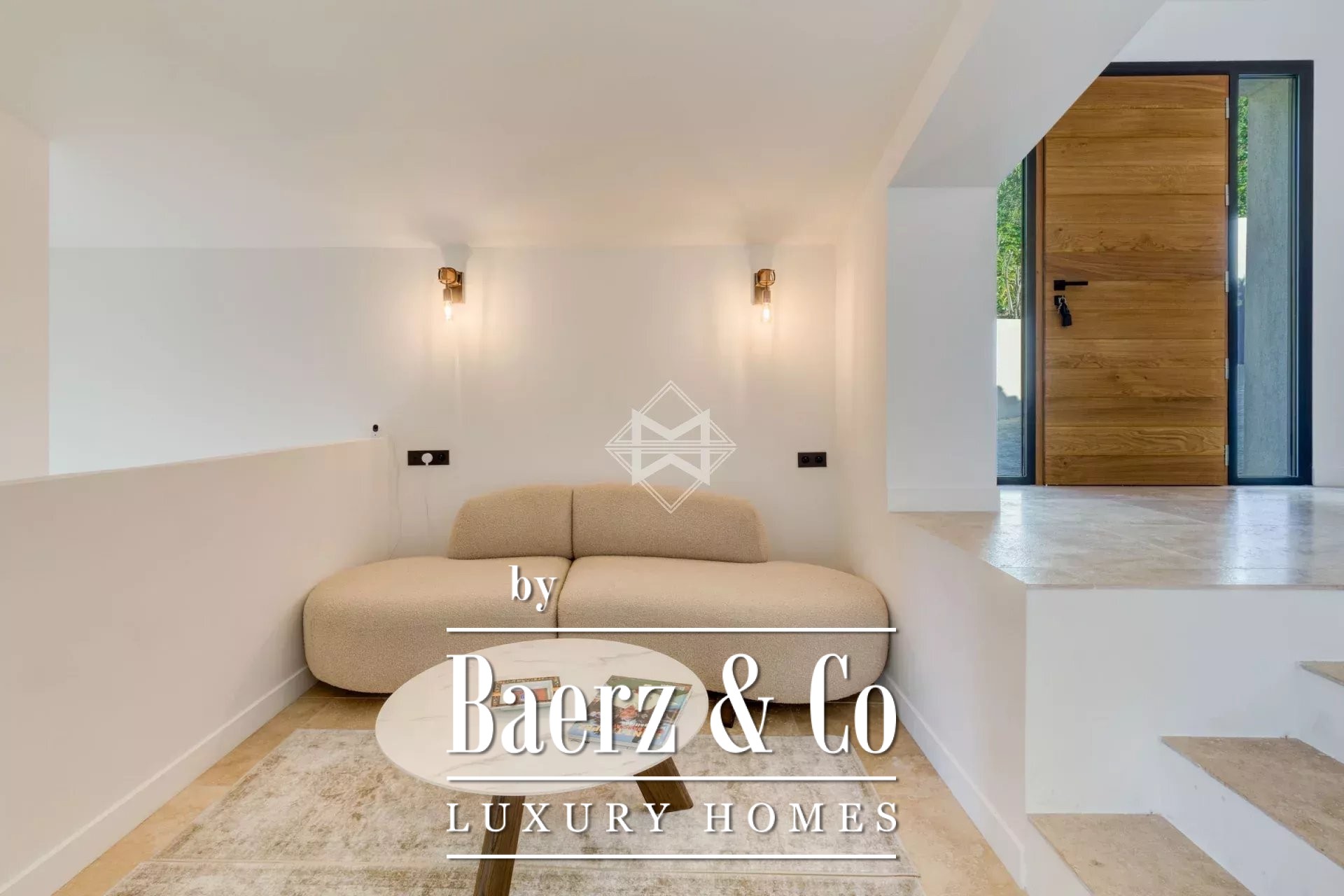 Villa Cavalaire-sur-Mer bevindt zich in een rustige enclave en onderscheidt zich als een nieuwbouw met royale ruimtes en een ononderbroken uitzicht op de Middellandse Zee. De woning beslaat 220 m² verdeeld over twee verdiepingen en beschikt over verfijnde leefruimtes die ontworpen zijn voor privacy en comfort. Bij binnenkomst op de begane grond wordt u verwelkomd door een lichte woonruimte met open keuken, aangevuld met een bijkeuken en een master suite met privé-douche en kleedkamer. Op de eerste verdieping bieden drie extra suites elk uitzicht op zee, waardoor het interieur wordt ondergedompeld in het serene licht van de Côte d’Azur.
