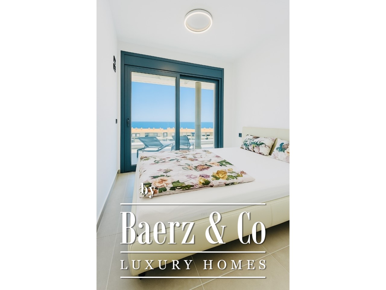 De woning bestaat uit een ruime woon-eetkamer met geïntegreerde keuken, 3 slaapkamers en 2 badkamers met douche, waarvan één en-suite naast de hoofdslaapkamer. Deze hoofdslaapkamer heeft ook een aparte kleedkamer. Alle slaapkamers zijn uitgerust met hoogwaardige inbouwkasten en comfortabele, luxe bedden.