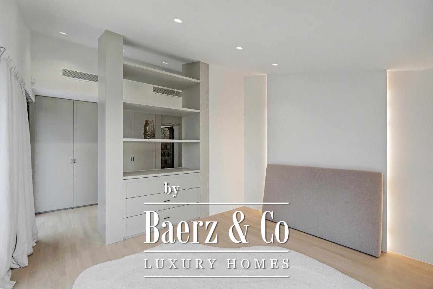Een royale entree leidt naar een lichte woonkamer, waar grote ramen uitkijken op de kustlijn van Puerto Portals. Deze ruimte vloeit naadloos over in een eigentijdse eetkamer en een designkeuken, volledig uitgerust, die aansluit op de fraai aangelegde tuinen en het serene zwembadgedeelte. Meerdere terrassen omarmen de villa, verenigen binnen- en buitenleven en bieden zowel rustige plekken als fijne locaties om samen te komen onder het mediterrane licht.