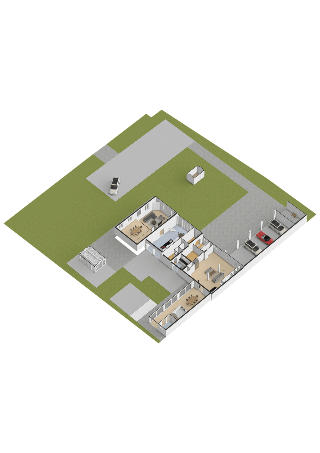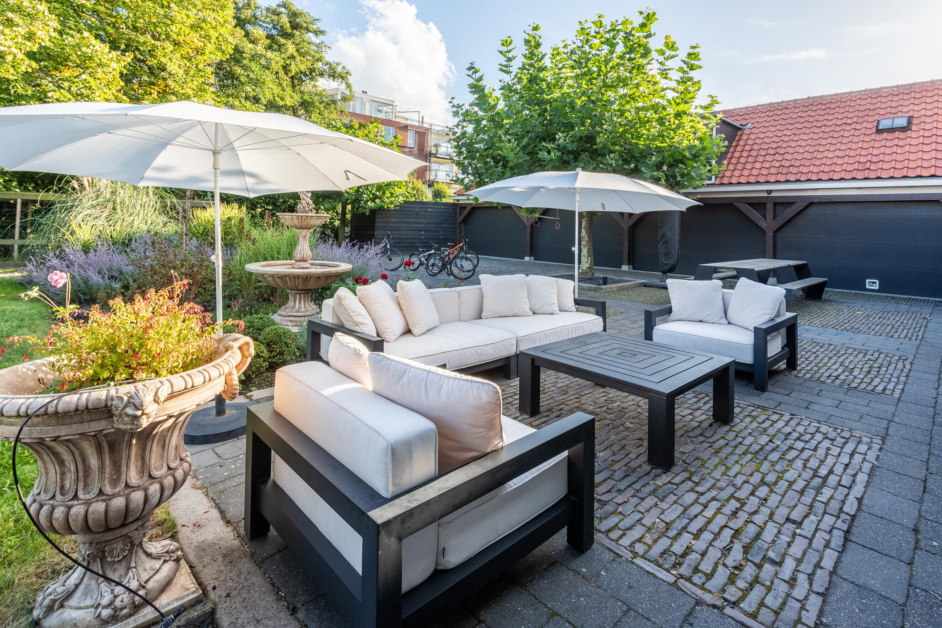 - Garage met vier deuren, gym en zolder (65 m²) met potentie tot uitbreiding met mogelijkheid tot een eigen ingang;