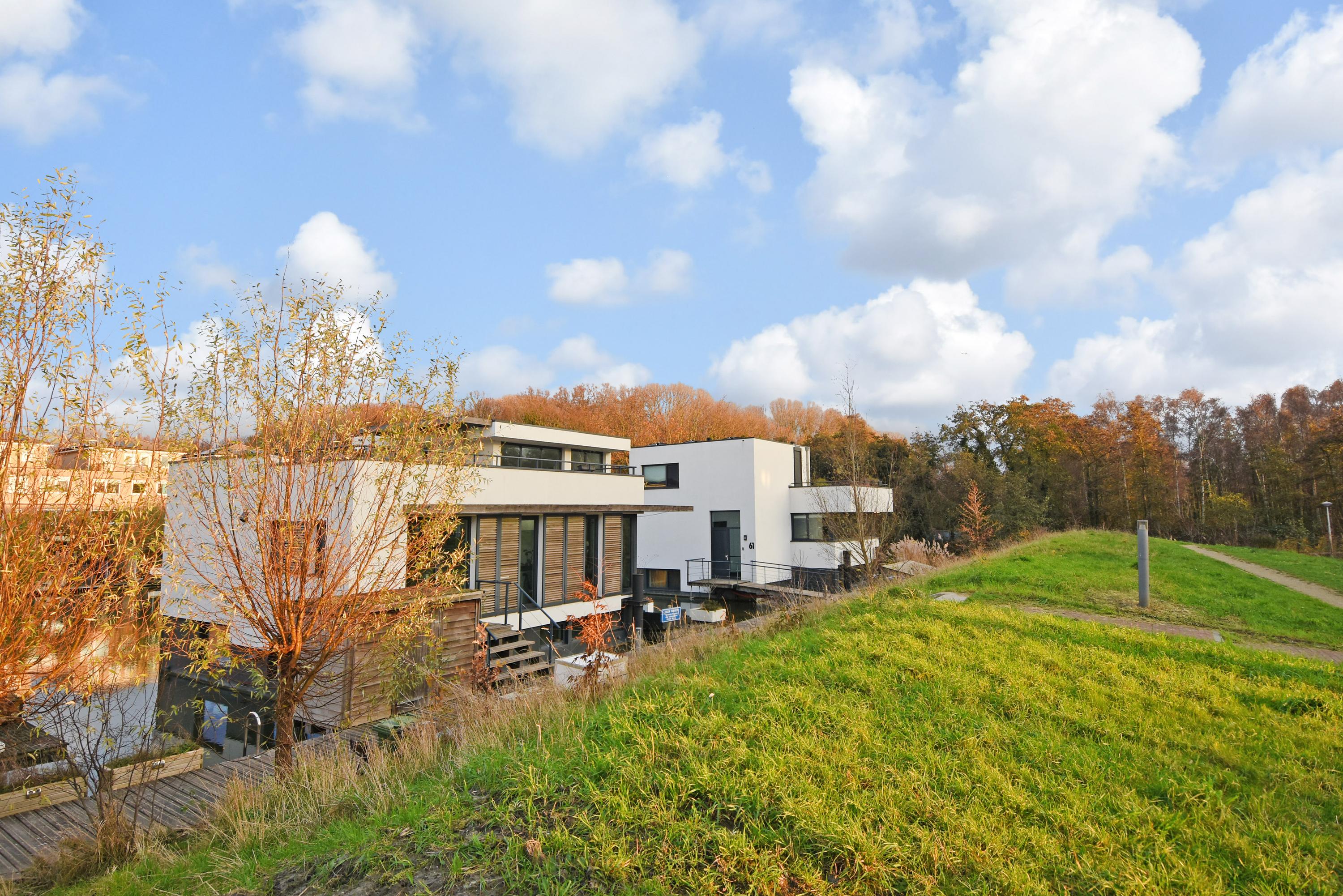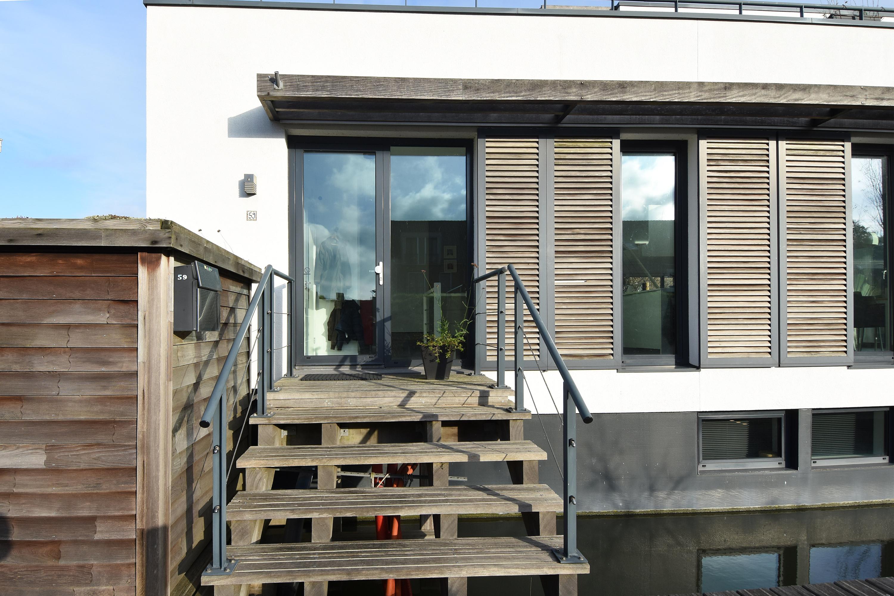 De woning ligt geheel vrij aan een gezamenlijke (mandelige) steiger naast een ‘dijk’. Dit is een ecologische zone met natuurlijke begroeiing die veel privacy biedt. De woning kijkt uit op het water en op het mooie Hof van Delft park, waar het fijn recreëren is. De buurt is heerlijk rustig en ruim opgezet met veel water en groen. Je ervaart hier een gevoel van ruimte en vrijheid.