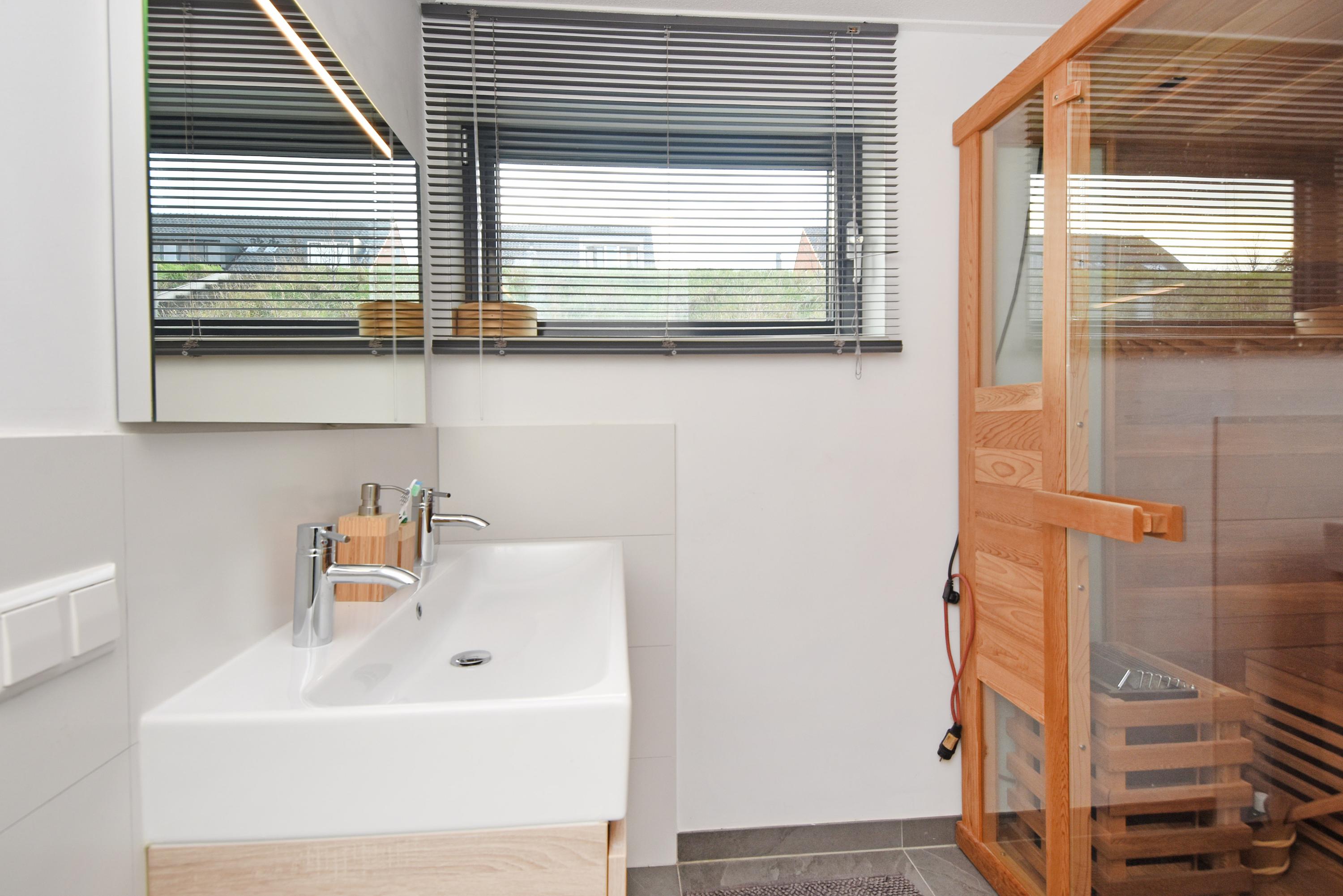 Op de benedenverdieping van deze woning kom je nog veel meer luxe, ruimte en voorzieningen tegen. Zo is er een ruime werkkamer/atelier te vinden, een 2e toiletruime met fontein en een luxe 2e badkamer met inloopdouche, dubbele vaste wastafel + meubel en een sauna. Verder zijn er nog 3 ruime slaapkamers te vinden, waarvan één met een grote vaste kast. Vanuit deze kamer bereik je een verrassend riante berging, die het mogelijk maakt om veel spullen te stallen en op te bergen.