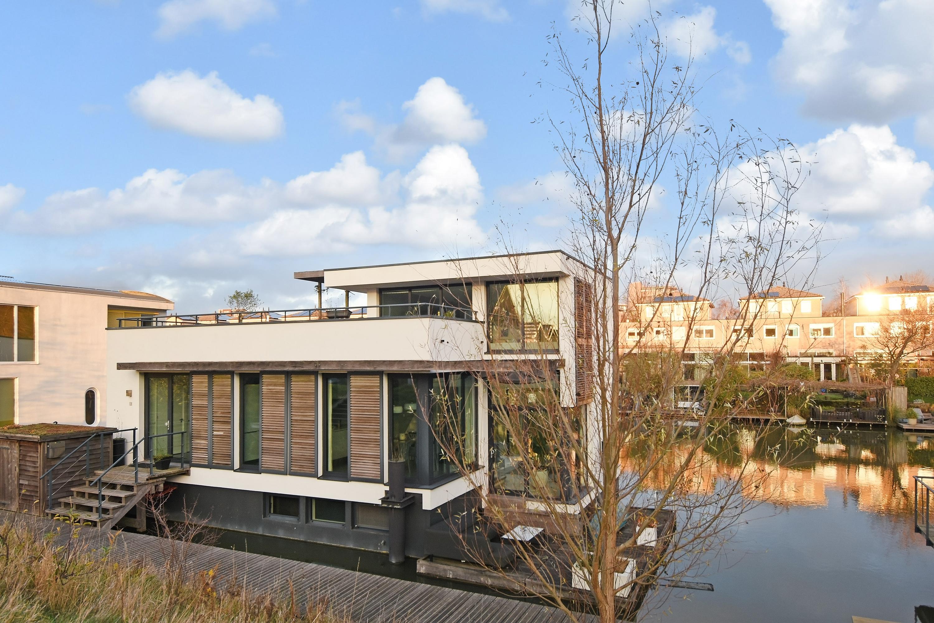 Deze sfeervolle, royale en energiezuinige drijvende woning is gelegen op een bijzondere plek op het water, omgeven door heel veel rust en groen. De woning heeft een luxe uitstraling, is goed onderhouden en is zeer praktisch ingedeeld.