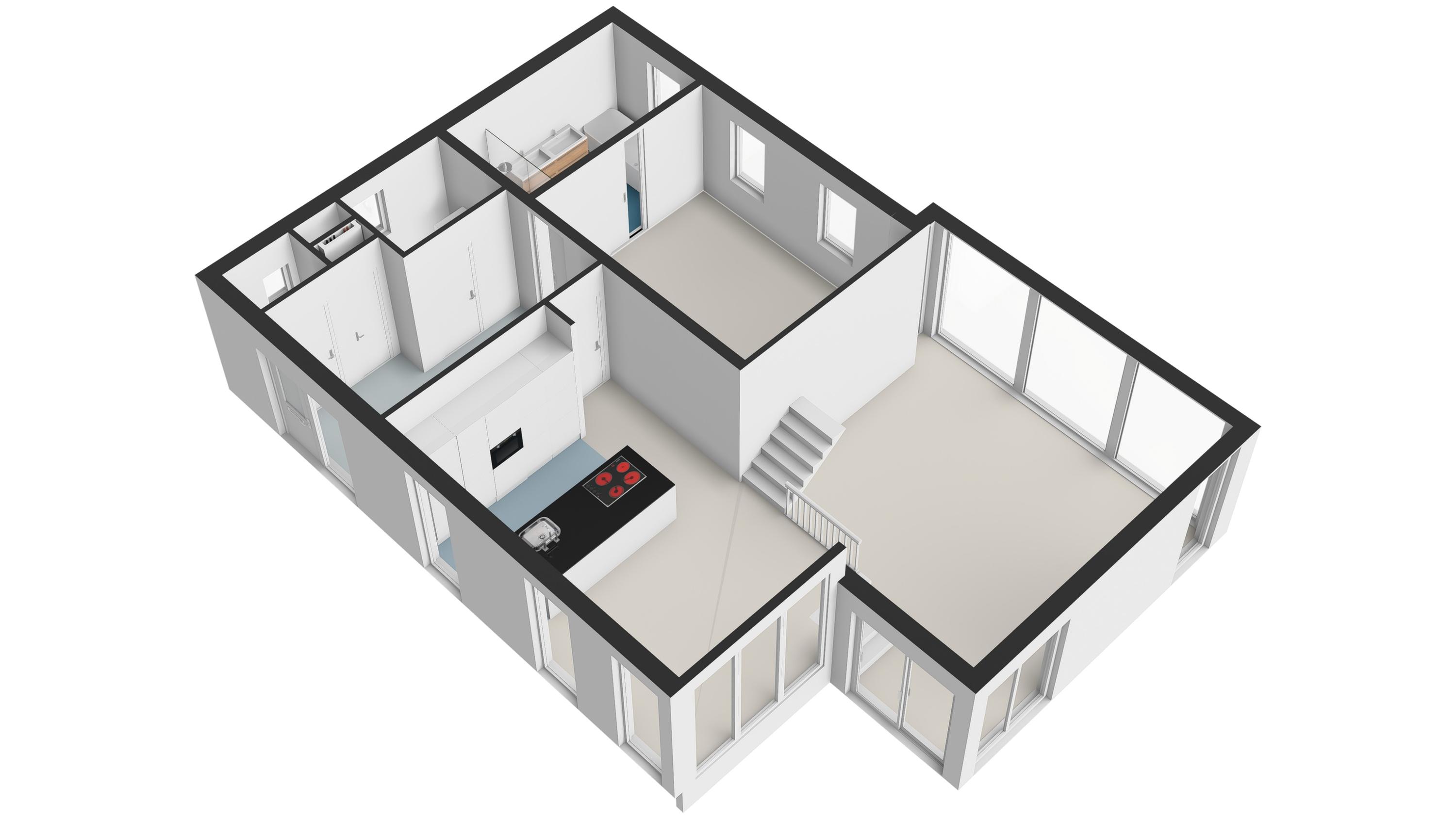 - Rondom voorzien van aluminium kozijnen met dubbele (HR ++) beglazing.