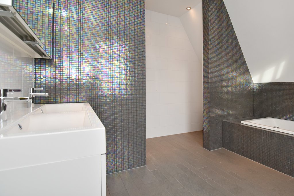 Ruime overloop met dakraam. Riante ouderslaapkamer met vaste kasten en aangrenzende luxe badkamer. De badkamer is voorzien van een ligbad met whirlpool, ruime douche, toilet en wastafelmeubel met dubbele wastafel. Slaapkamer aan de achterzijde met dakkapel. Twee slaapkamers (3.14 x 3.84m en 3.50 x 3.84m) beiden met dakkapel en speelse vide. Tweede badkamer met dubbele wastafel en douche. Toiletruimte met wandcloset en fonteintje.