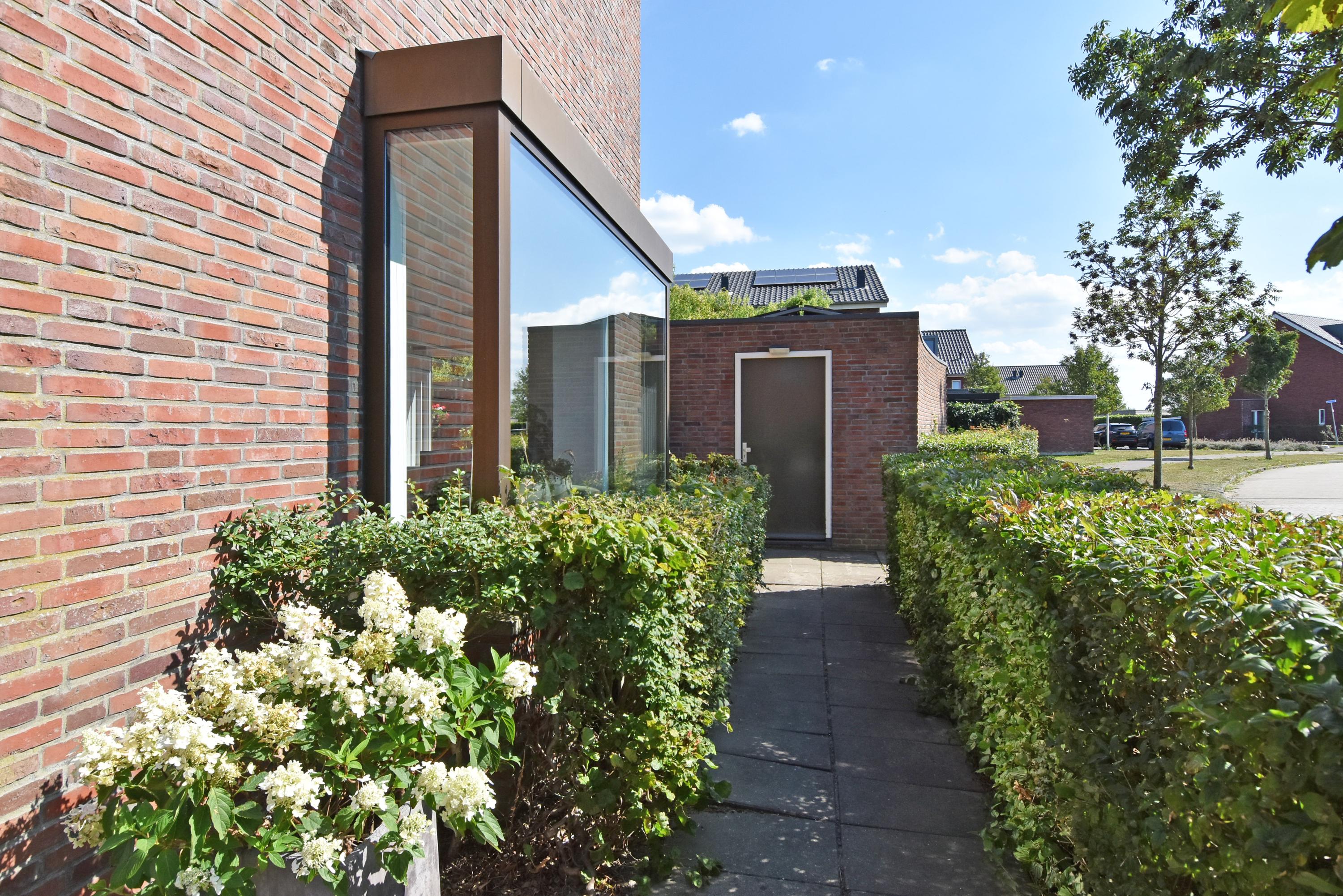 Vanuit de ruime hal kom je de sfeervolle, lichte living binnen. Deze vormt door de grote schuifpui een prachtige verbinding met de zonnige tuin. De tuin is recent fraai aangelegd en voorzien van veel groen, een gazon een zonnig terras, een veranda en overkapping: een heerlijke plek om het hele jaar door te genieten en relaxen. De tuin grenst aan het water.