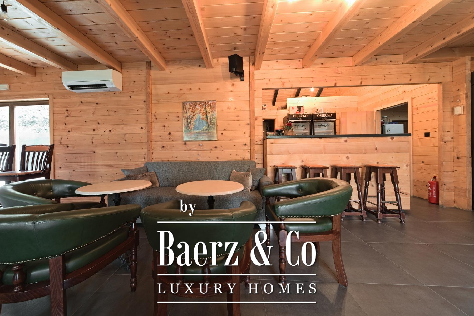 Dit zakelijk complex Draž bevindt zich in het hart van Baranja en biedt een gevestigd accommodatieportfolio op een perceel van 16.000 m². Het geheel omvat een hoofdwoning en zes verhuurhuizen en presenteert zich als een zeldzame kans voor veeleisende investeerders die een positie zoeken in een van de dynamische grensregio’s van Kroatië. De hoofdresidentie, gebouwd in 2023, beschikt over een veelzijdige evenementenruimte geschikt voor maximaal 50 gasten, een bar, een doordachte keuken, bijruimten, sanitaire voorzieningen, en tien bedden op de bovenverdieping. Airconditioning, centrale verwarming via een pelletsysteem en internetverbinding zorgen het hele jaar door voor comfort en moeiteloze exploitatie. Zes parkeerplaatsen bevinden zich aan de voorzijde van het gebouw.
