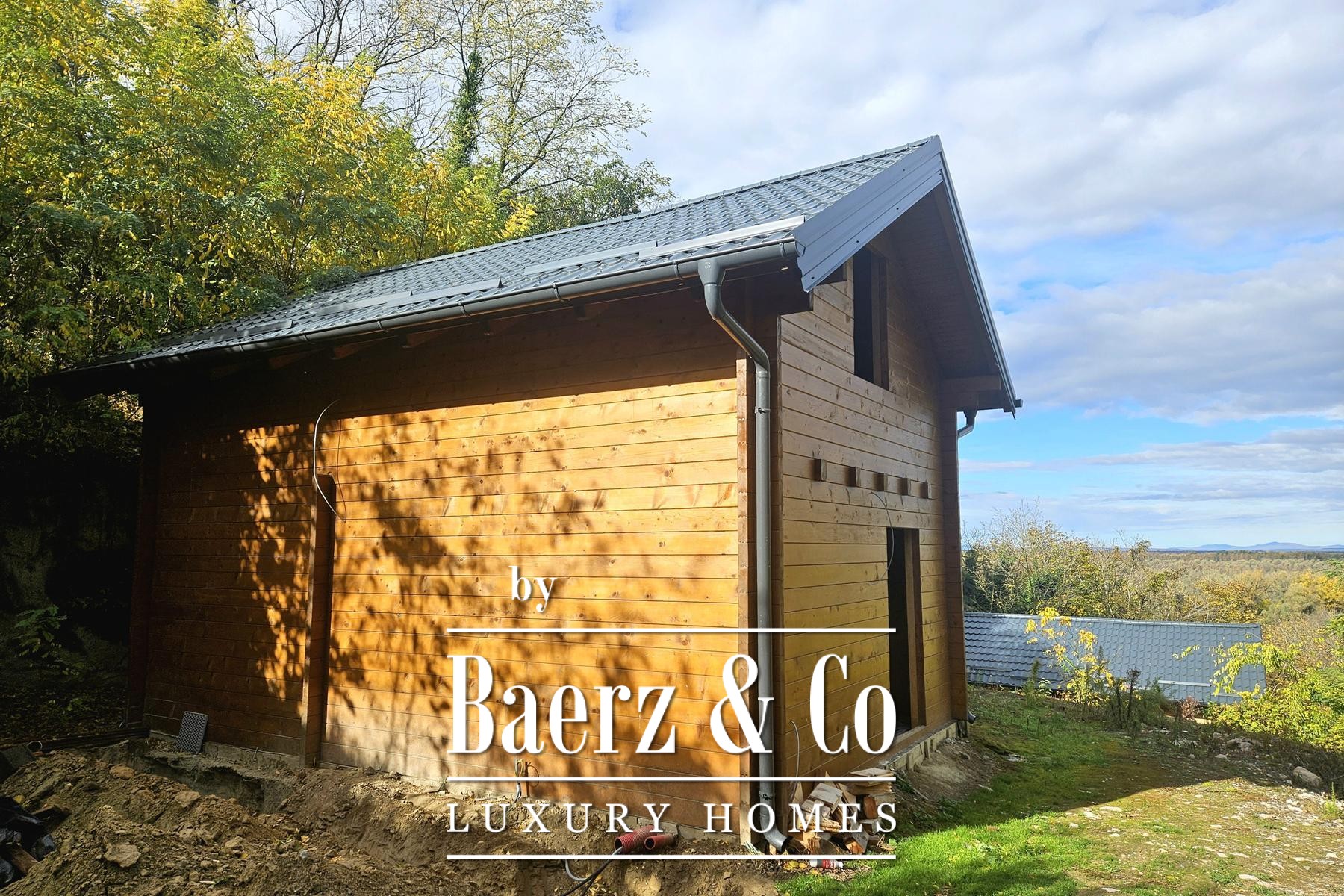 Grenzend aan de hoofdwoning liggen vijf recent opgeleverde houten woningen, elk met 80 m² woonoppervlak. De indeling omvat een lichte woonkamer en badkamer op de begane grond, terwijl de bovenverdieping plaats biedt aan twee slaapkamers. Aan de achterzijde bieden privéterrassen uitzicht op het ruime perceel en het verwarmingssysteem is ingericht op zelfstandigheid en efficiëntie.