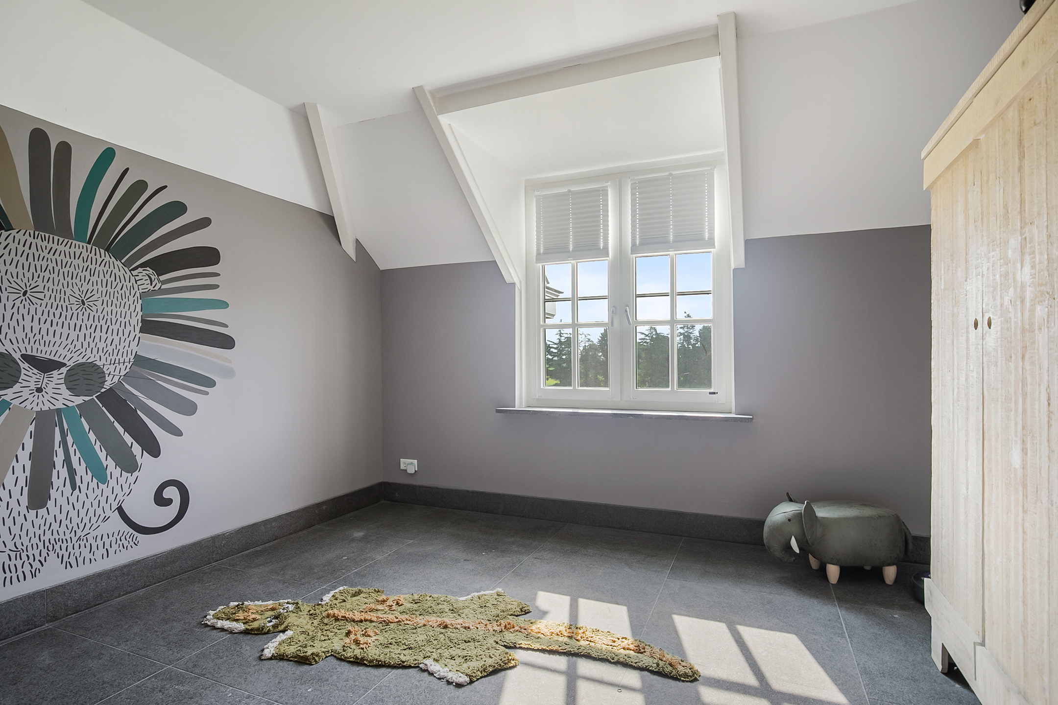 De royale overloop met vide biedt toegang tot 3 ruime slaapkamers, de badkamer, toiletruimte en de zolder. Ook is er toegang tot een charmant Frans balkon welke een fraai uitzicht biedt op de omgeving. De overloop en alle slaapkamers hebben dezelfde afwerking, natuurstenen vloer, stucwerk wanden en een stucwerk plafond.