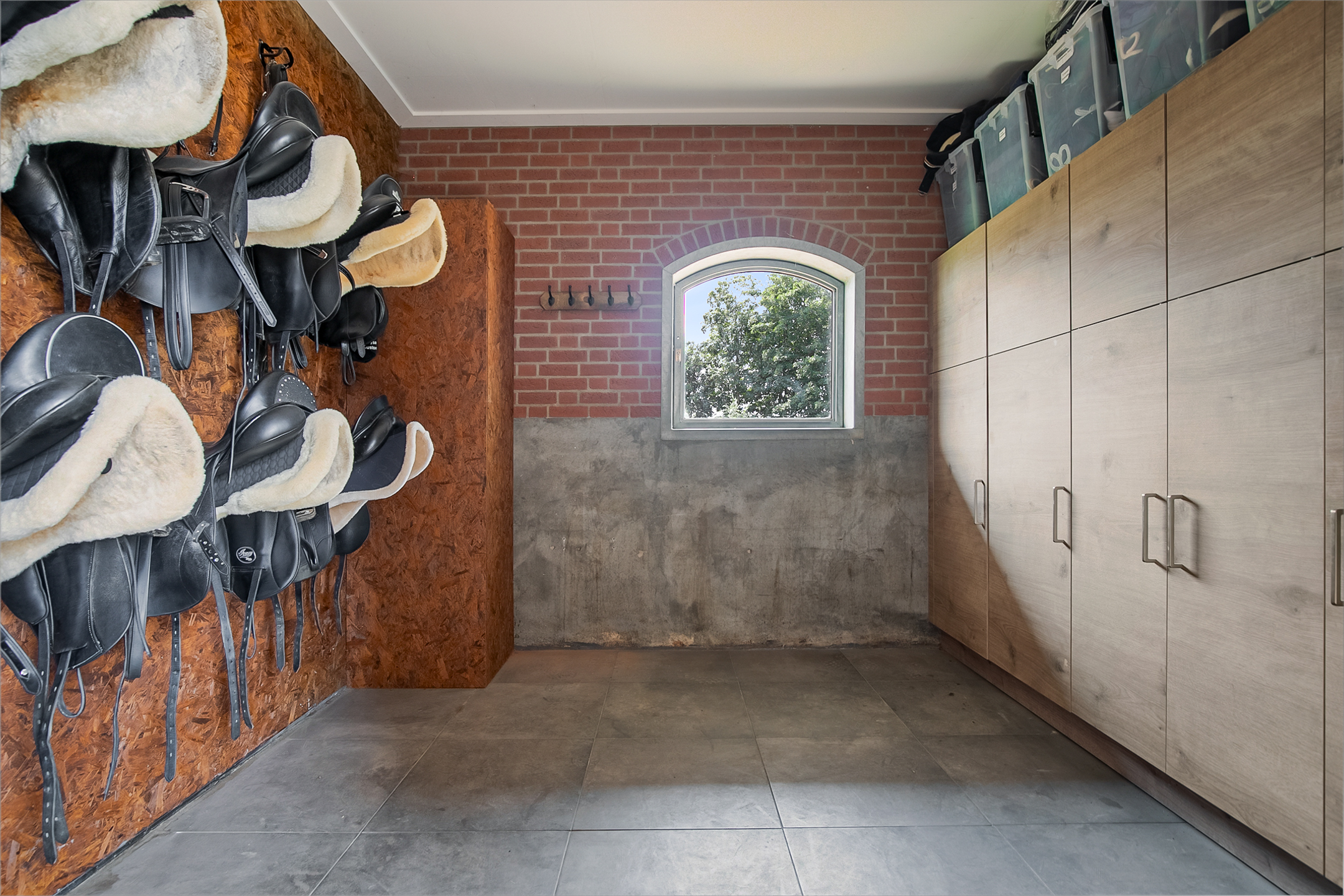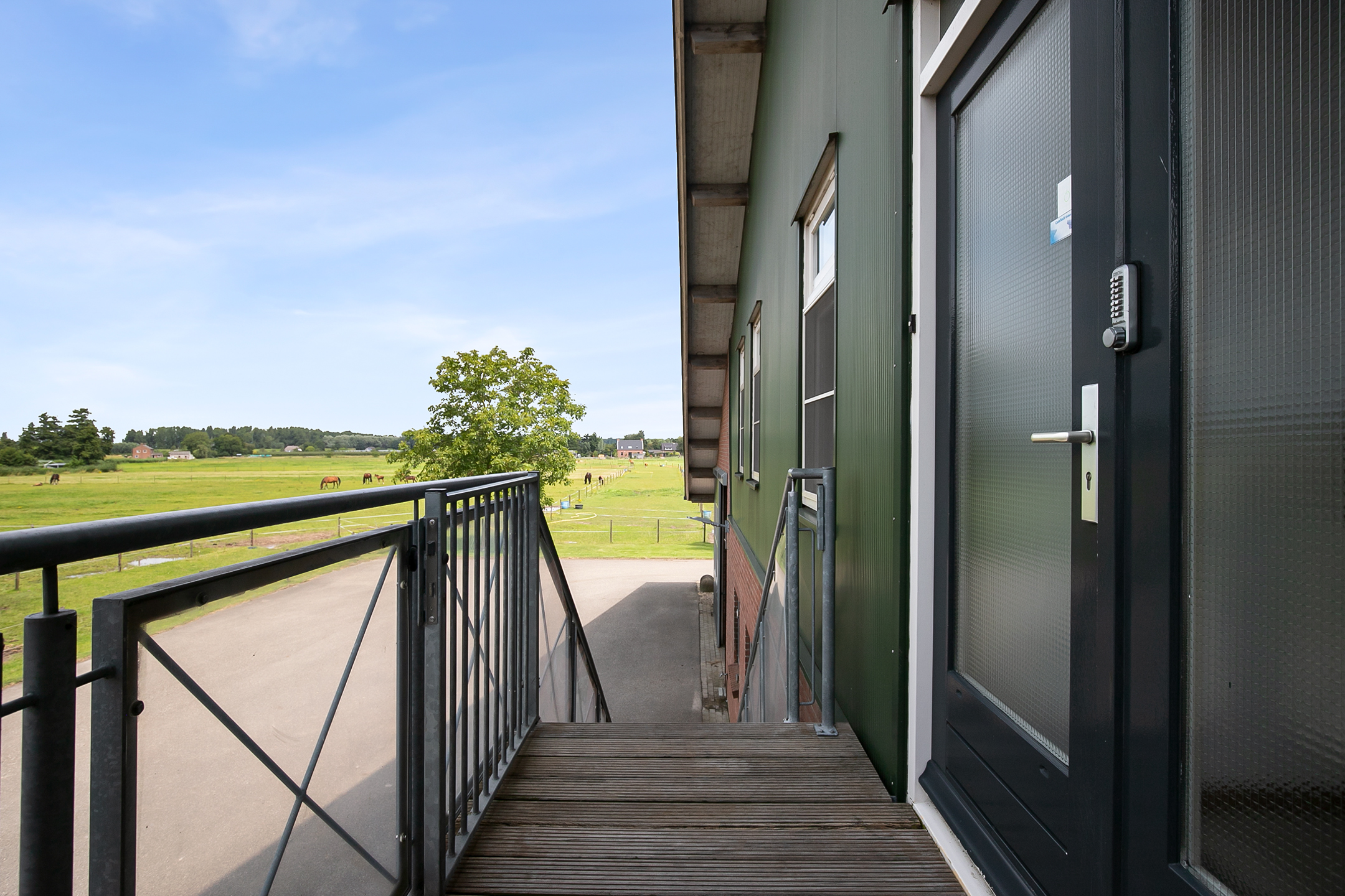 - Aan zowel de voor- als de achterzijde van de rijhal is een appartement gesitueerd, deze zijn perfect als