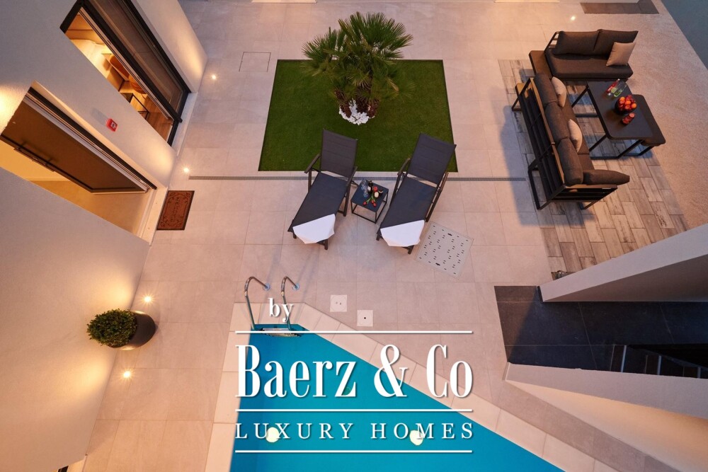 Royale terrassen vergroten de leefruimte naar buiten, aangevuld met een zwembad van 30 m² en een zonneterras. Vier parkeerplaatsen buiten zorgen voor comfort en privacy. Door de oriëntatie van de villa is er volop natuurlijk licht en directe toegang tot het strand, dat zich op slechts 50 meter bevindt. Gebouwd in 2023 is deze moderne villa in Dugi Rat het hele jaar door comfortabel, met geavanceerde airconditioning, voorzieningen voor zonnepanelen, een A+ energiecertificaat en uitgebreide beveiliging met videobewaking. Gelegen tussen Split en Omiš en op 30 minuten van Makarska belichaamt zij een ingetogen luxueuze levensstijl aan de Adriatische Zee.