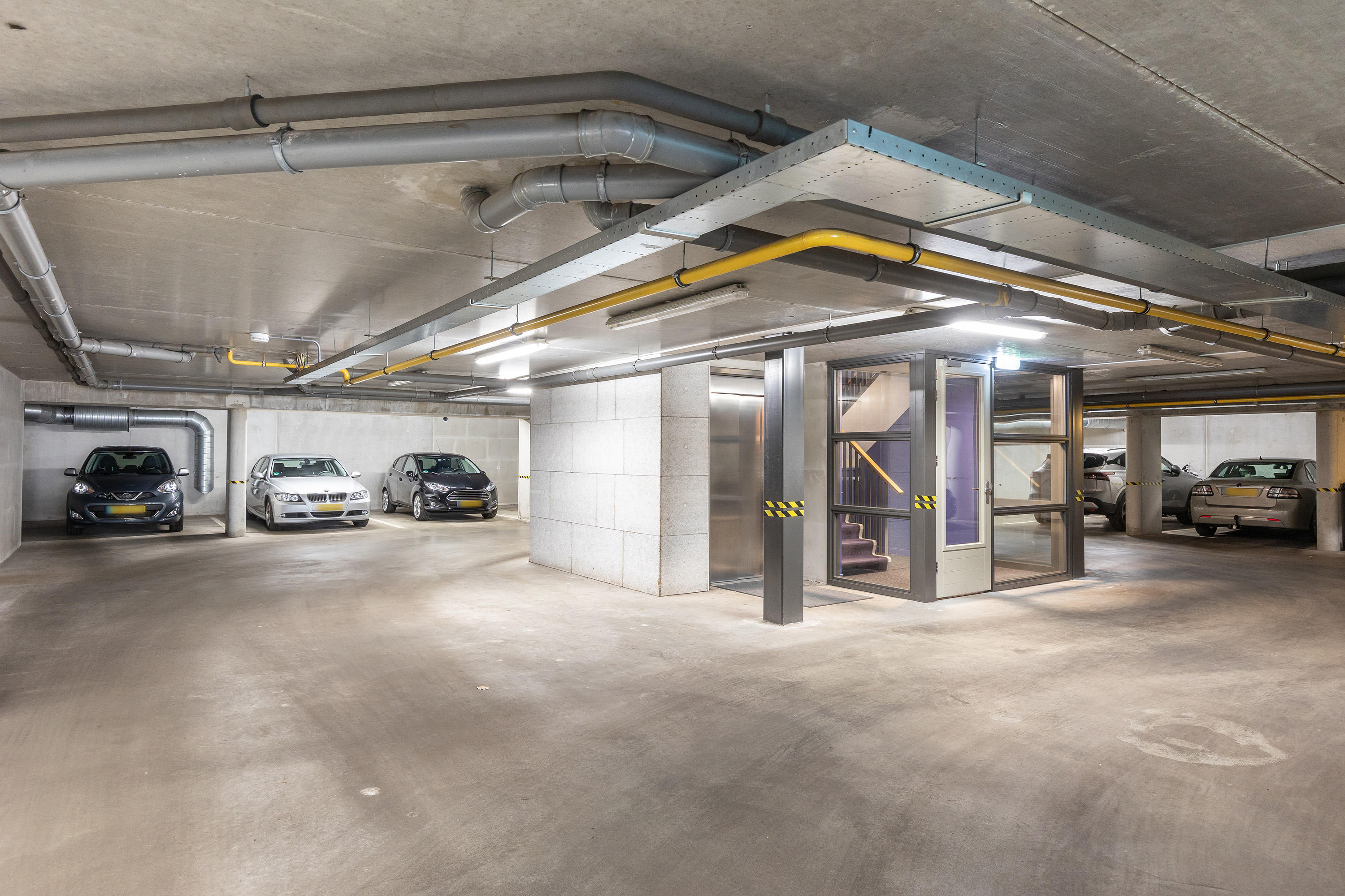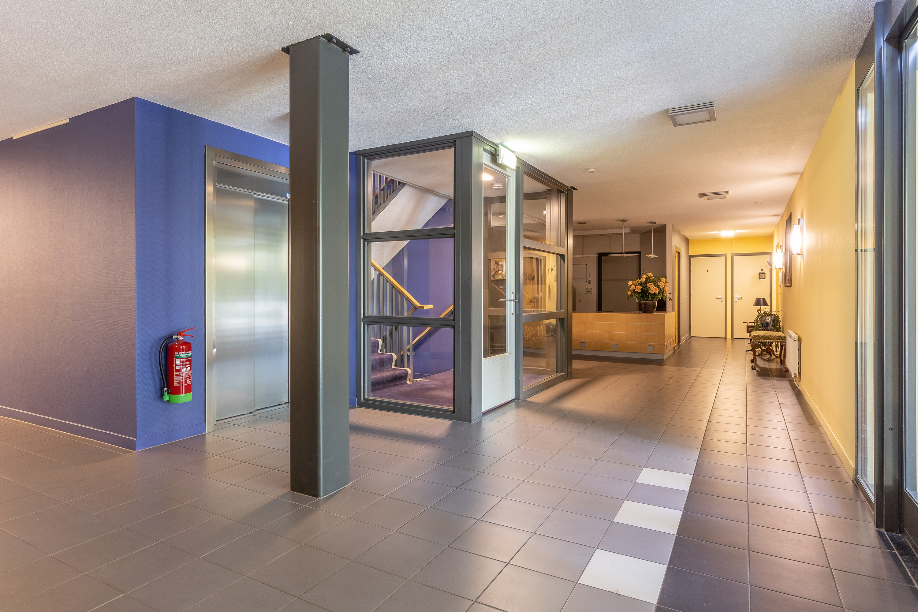 De afgesloten entree met videofoon en modern druppelsysteem biedt toegang tot het complex. Vanuit de royale hal of de parkeerkelder brengt de lift u naar de derde verdieping, waar slechts twee appartementen zijn gesitueerd.