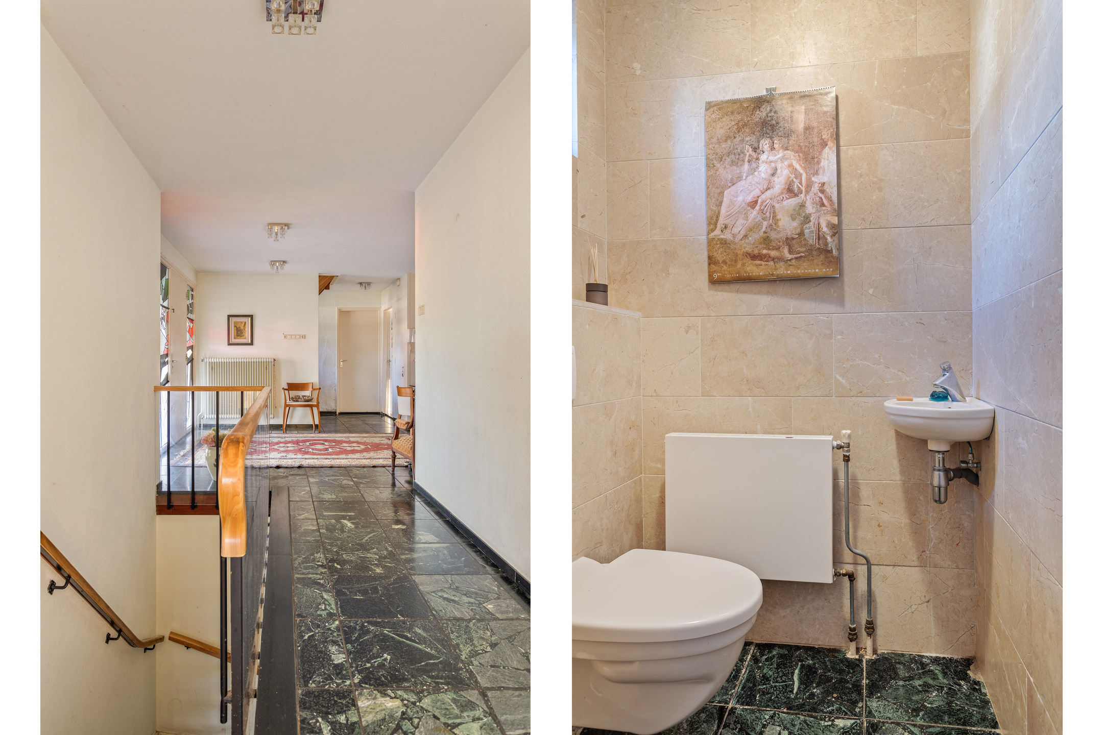 Deze villa, gebouwd in de jaren ’70 en in 2001 stijlvol uitgebreid, kenmerkt zich door strakke lijnen, grote raampartijen en een uniek glas-in-loodpaneel van Hans Morselt. Het resultaat is een woning met ziel, sfeer en hedendaags comfort.
