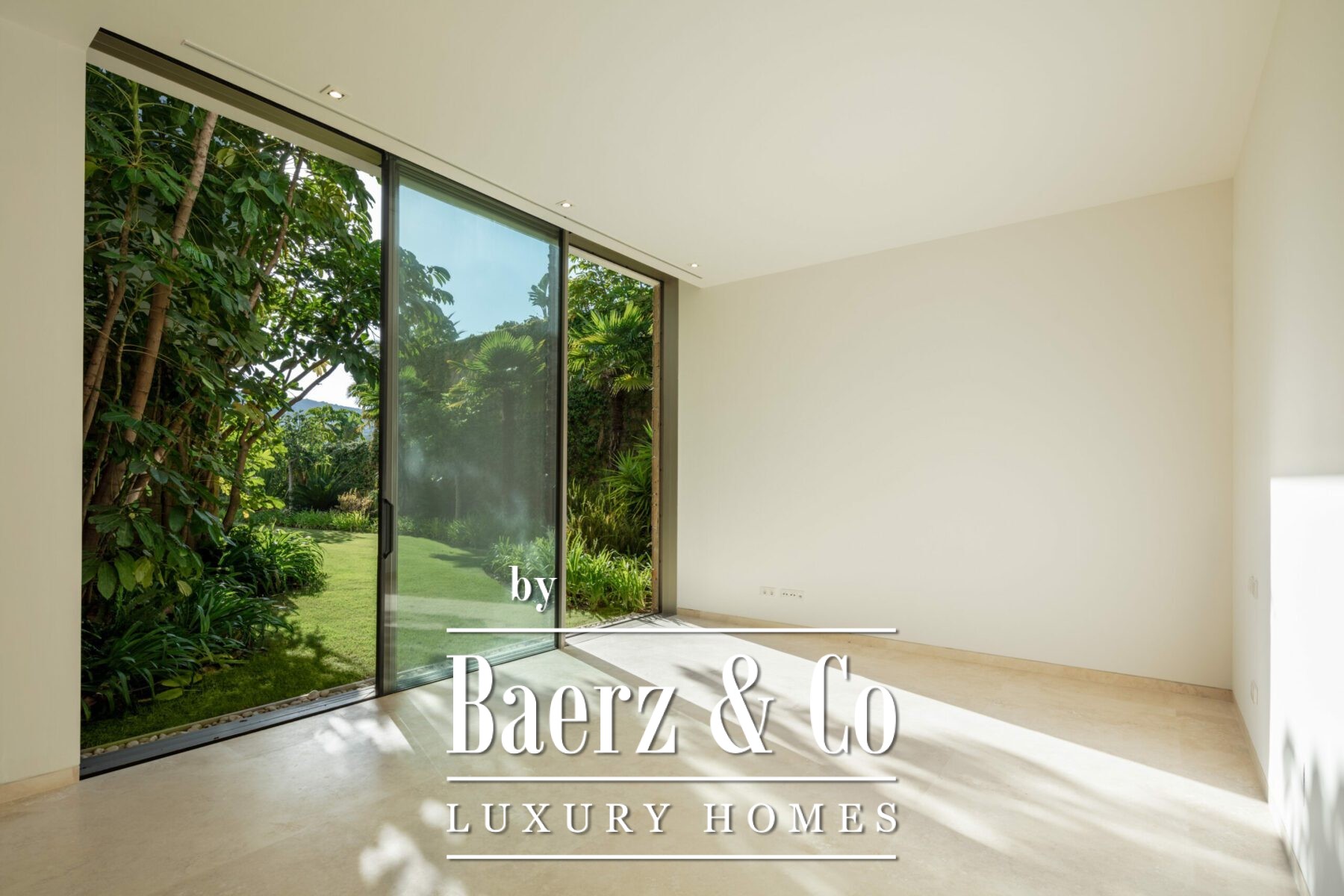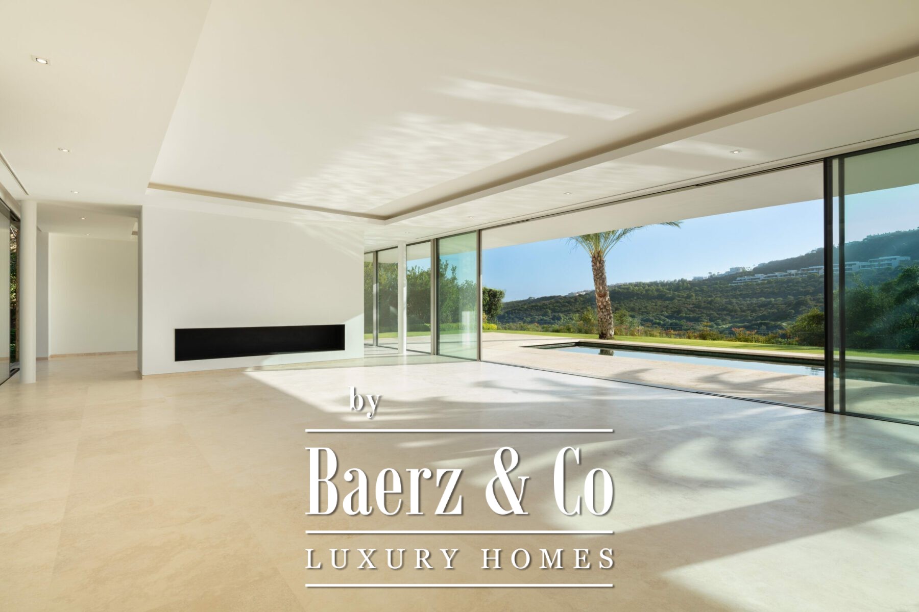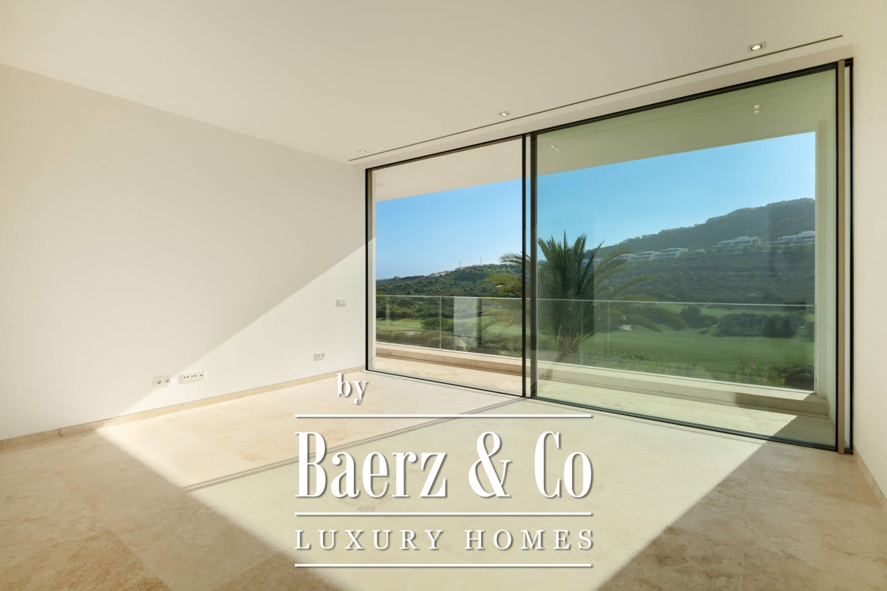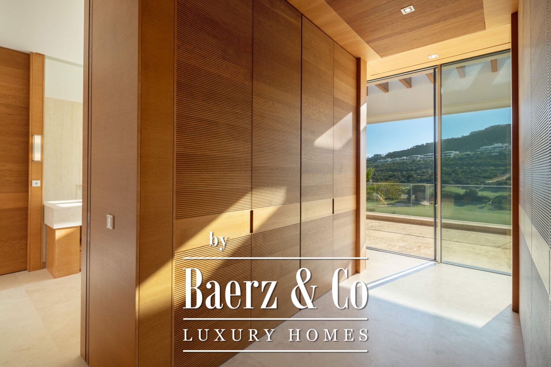 a seamless sense of harmony throughout. The ground floor is home to the well-appointed kitchen, complete with Gaggenau appliances and a comfortable living area that effortlessly connects to the outdoors through a wealth of glass sliding doors. Embracing the concept of indoor-outdoor living, the carefully landscaped gardens create a verdant oasis that melds seamlessly with the interior spaces, offering a unique ambiance. A serene swimming pool complements the garden, inviting year-round enjoyment, while ample terrace space caters to al-fresco dining and chill-out spaces. With its privileged frontline position, breath taking views and stunning architectural design, this extraordinary property epitomises the exclusive luxury golf lifestyle found only at this prestigious golf and spa resort.