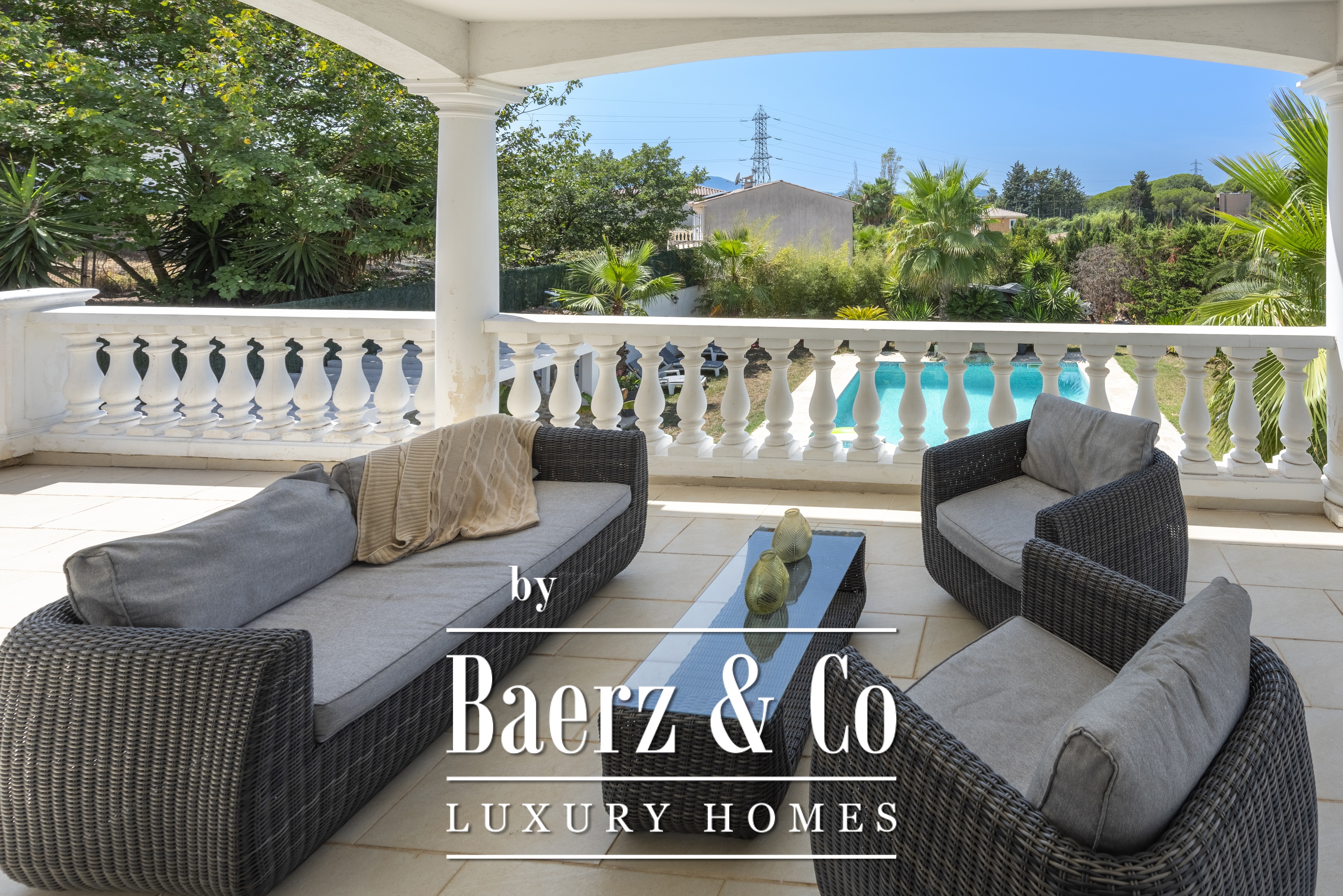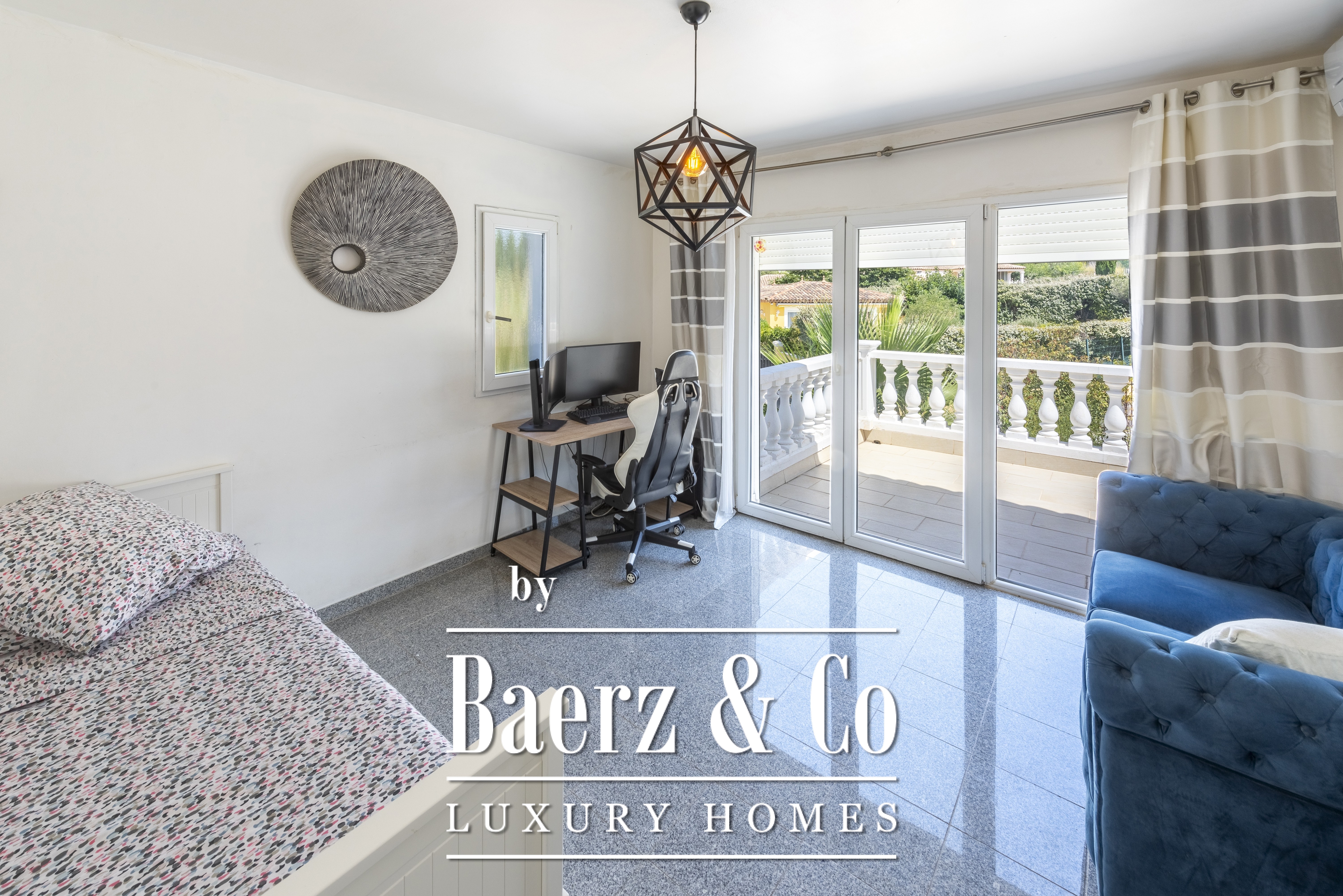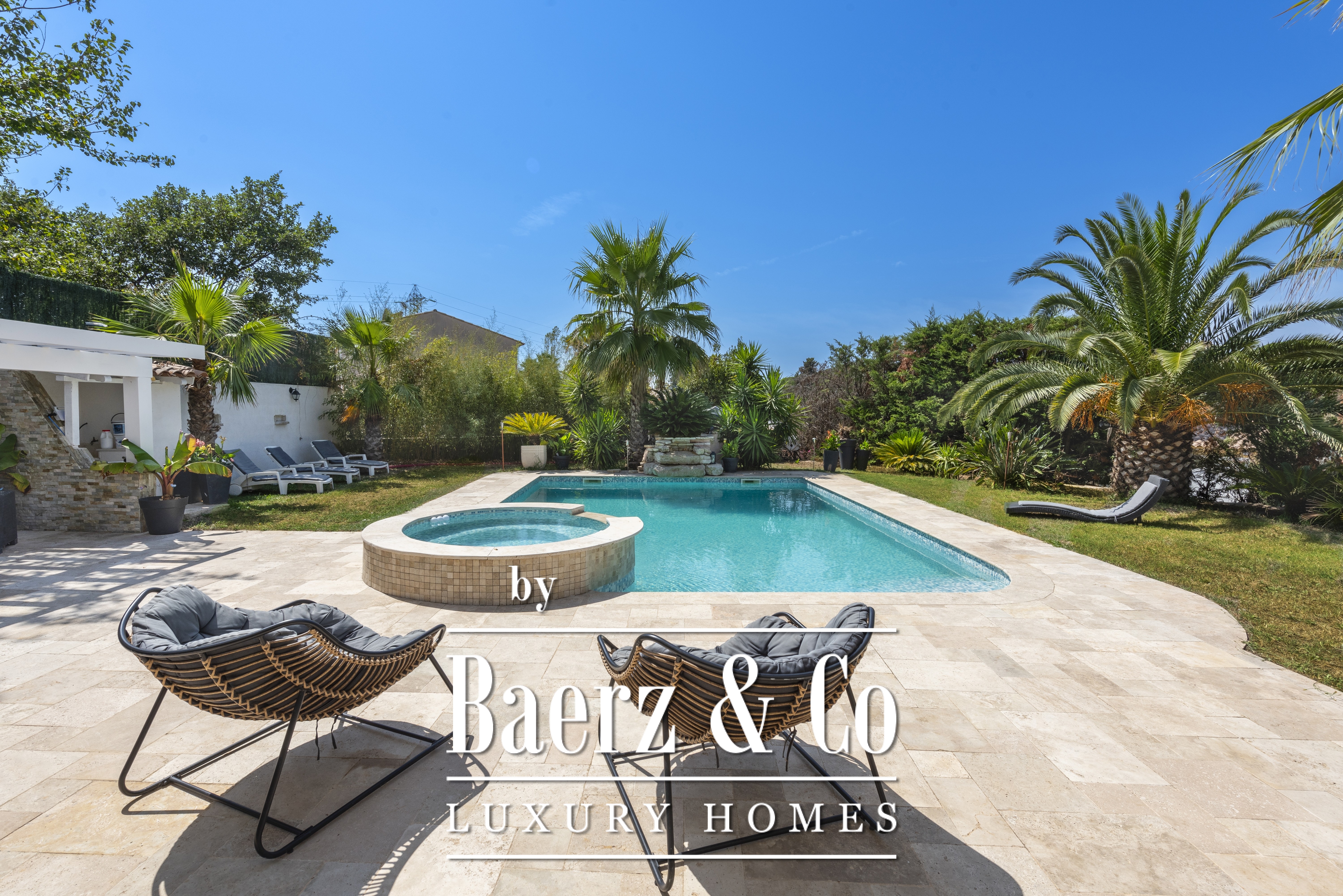 Villa Fréjus biedt een villa van 172 m² te koop aan, ontworpen rond royale ruimtes en verfijnd licht, gelegen in een privé en beveiligd domein. Deze woning bevindt zich in een rustige woonomgeving en biedt direct toegang tot voorzieningen zoals winkels, scholen en hoofdwegen. Villa Fréjus verwelkomt u met een lichte leefruimte en een volledig uitgeruste open keuken, optimaal ingericht voor gastvrijheid. Op het westen gericht loopt het leefgedeelte vloeiend over in een ruim terras met uitzicht op het zwembad en de aangelegde tuin. Het slaapgedeelte omvat vier slaapkamers, een grote badkamer, een aparte douchekamer en een praktische wasruimte. Het perceel van 1.082 m² is ingericht met zowel open als overdekte terrassen en creëert zones voor zomerse diners, ontspanning bij het zwembad en een eigen jacuzzi. Granieten vloeren, vloerverwarming, omkeerbare airconditioning en elektrische rolluiken benadrukken de aandacht voor kwaliteit en comfort. De villa beschikt over een garage en ruime binnen- en buitenparkeergelegenheid, waardoor privacy en gemak worden gegarandeerd. De energieklasse B staat voor een uitgebalanceerde moderne efficiëntie.
