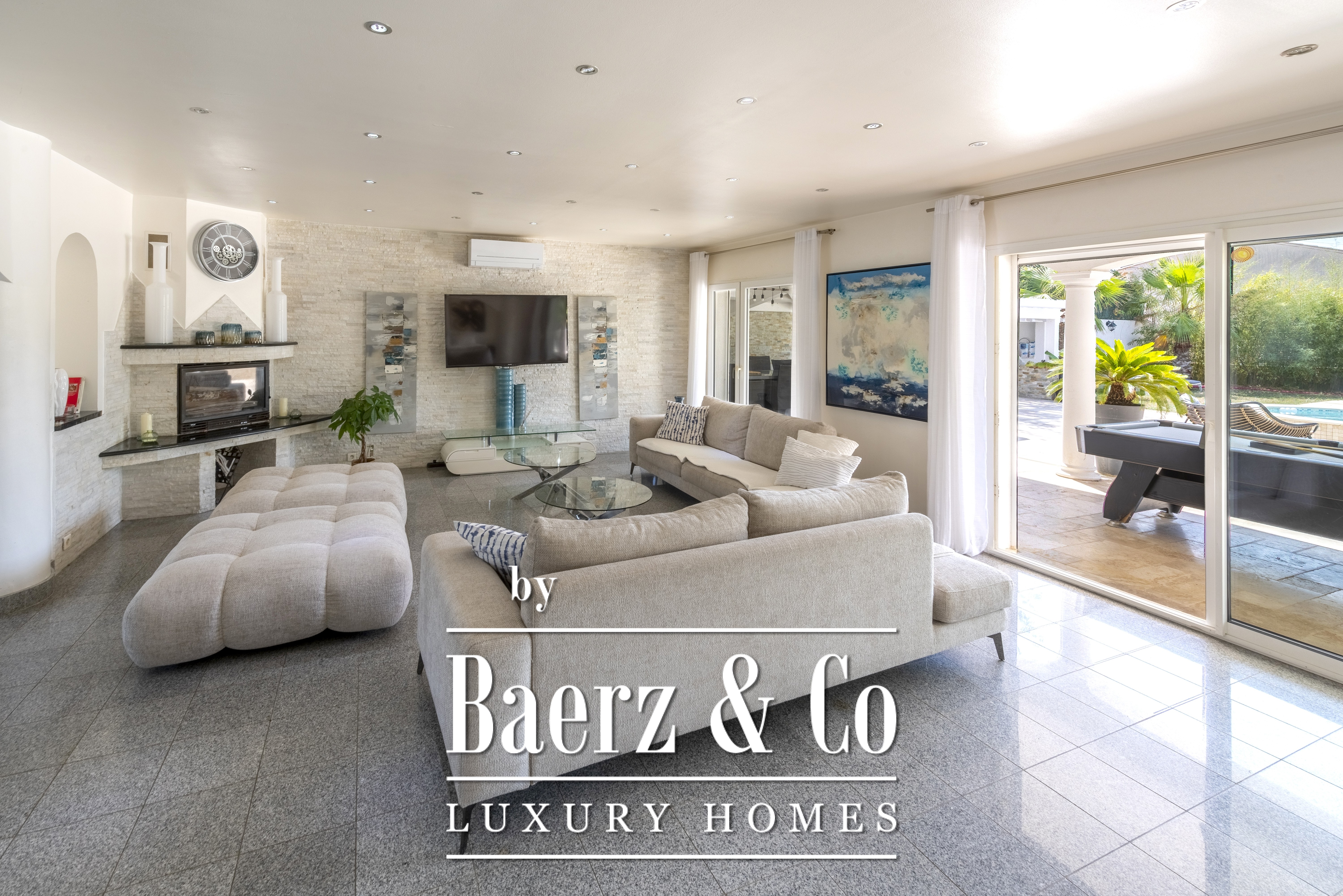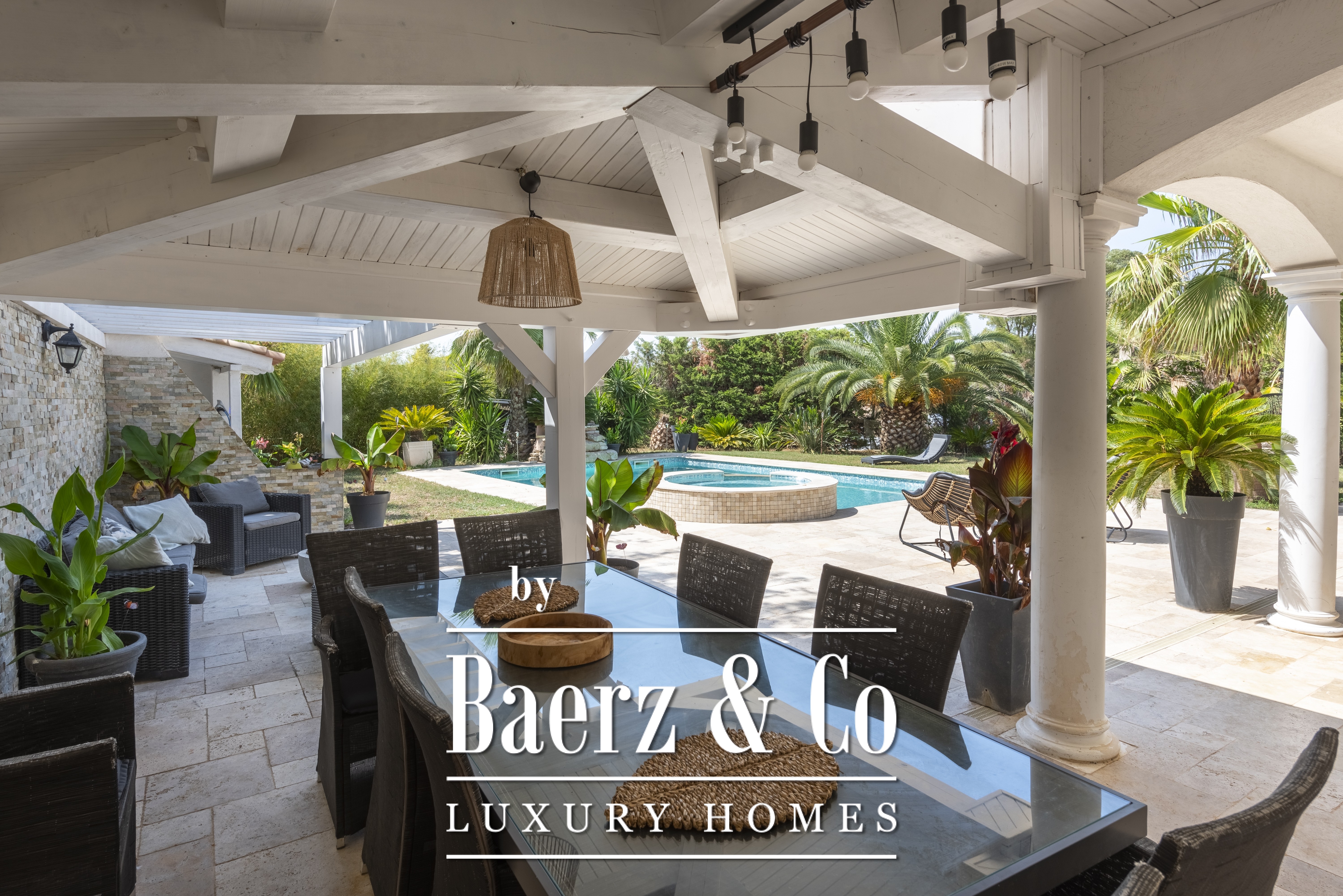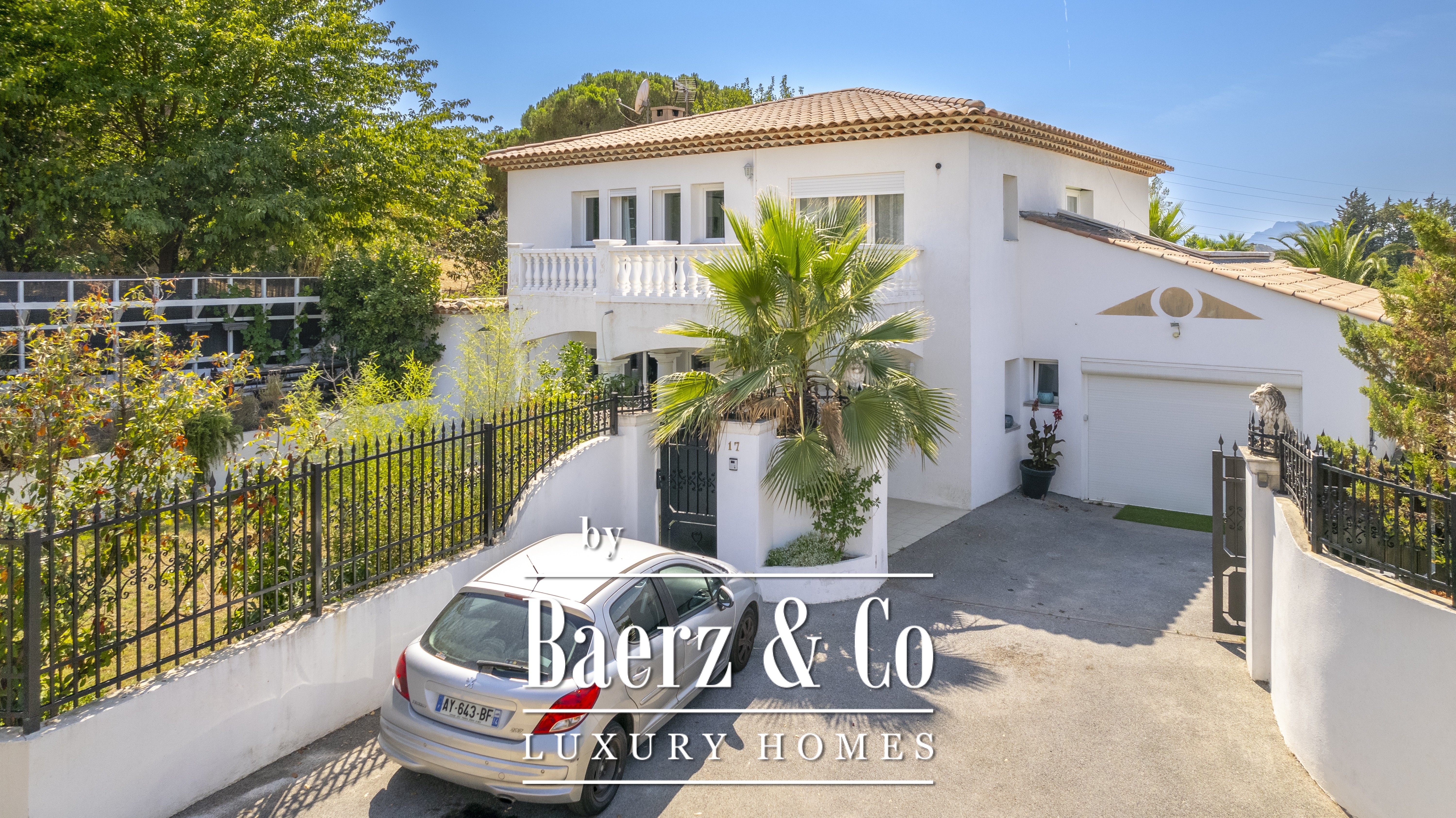 Villa Fréjus biedt een villa van 172 m² te koop aan, ontworpen rond royale ruimtes en verfijnd licht, gelegen in een privé en beveiligd domein. Deze woning bevindt zich in een rustige woonomgeving en biedt direct toegang tot voorzieningen zoals winkels, scholen en hoofdwegen. Villa Fréjus verwelkomt u met een lichte leefruimte en een volledig uitgeruste open keuken, optimaal ingericht voor gastvrijheid. Op het westen gericht loopt het leefgedeelte vloeiend over in een ruim terras met uitzicht op het zwembad en de aangelegde tuin. Het slaapgedeelte omvat vier slaapkamers, een grote badkamer, een aparte douchekamer en een praktische wasruimte. Het perceel van 1.082 m² is ingericht met zowel open als overdekte terrassen en creëert zones voor zomerse diners, ontspanning bij het zwembad en een eigen jacuzzi. Granieten vloeren, vloerverwarming, omkeerbare airconditioning en elektrische rolluiken benadrukken de aandacht voor kwaliteit en comfort. De villa beschikt over een garage en ruime binnen- en buitenparkeergelegenheid, waardoor privacy en gemak worden gegarandeerd. De energieklasse B staat voor een uitgebalanceerde moderne efficiëntie.