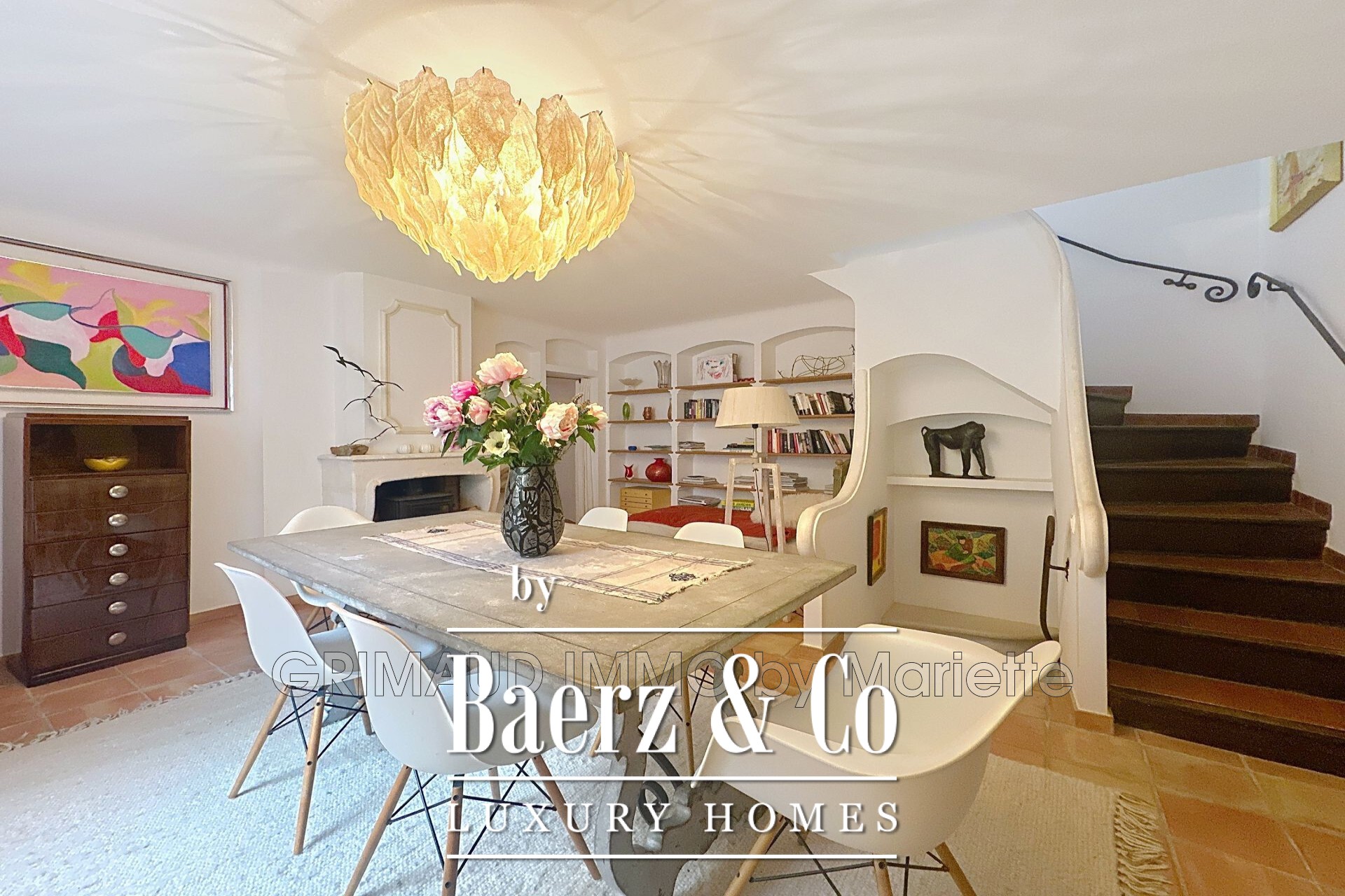 Het dorpshuis in Grimaud geniet een rustige ligging in het historische hart van het dorp, een adres geliefd om zijn authentieke karakter. Deze woning van 130 m² strekt zich uit over drie zorgvuldig ingedeelde etages, waarbij elke verdieping het tijdloze karakter van Grimaud weerspiegelt. Op de begane grond leidt een doordachte keuken naar de eetkamer en woonkamer; iedere ruimte is voorzien van een eigen open haard, wat een serene en warme sfeer creëert.
