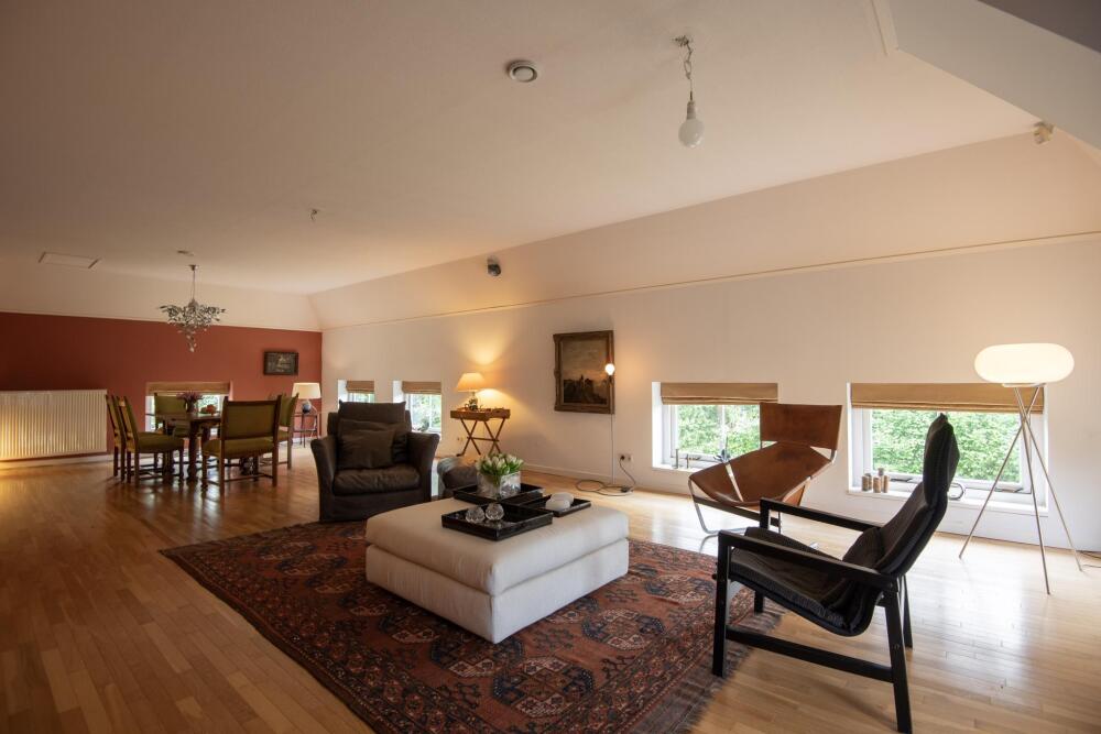 De dakvensters zorgen voor een zee aan licht. Aan de bibliotheek grenst een tweede woonkamer, atelier, tv-kamer; zomaar een paar functies die u aan die 60m2 zou kunnen toekennen. Aan de andere kant van de bibliotheek is nog een slaapkamer met aangrenzende 3e badkamer. Deze is ingericht met een grote douche, wastafel en het