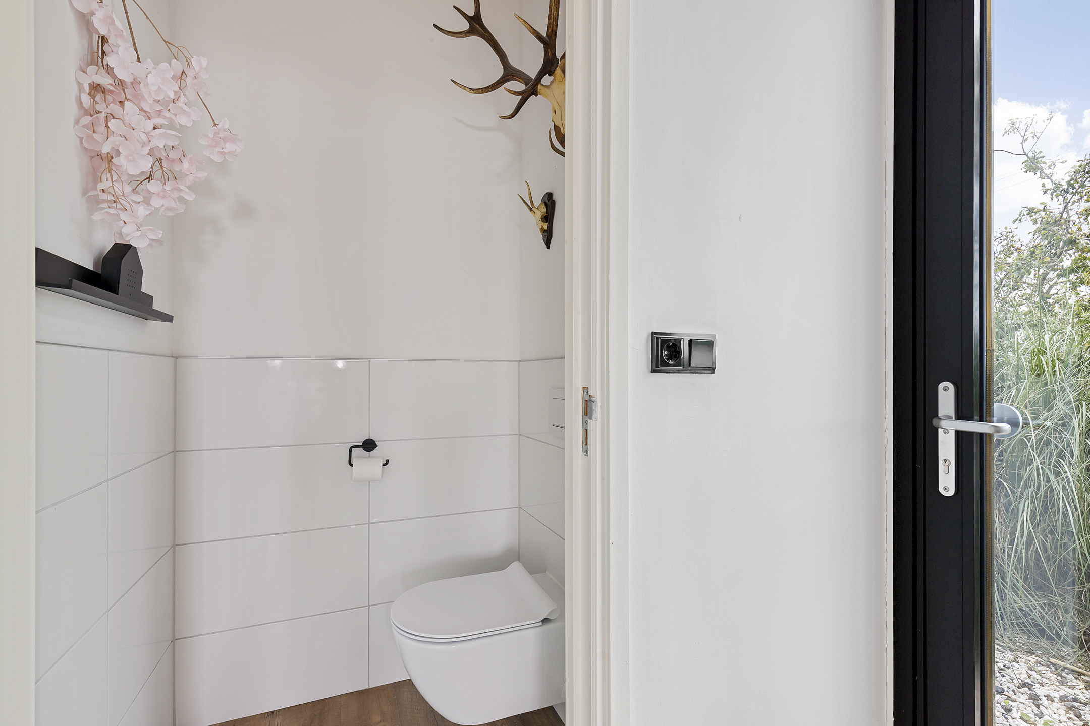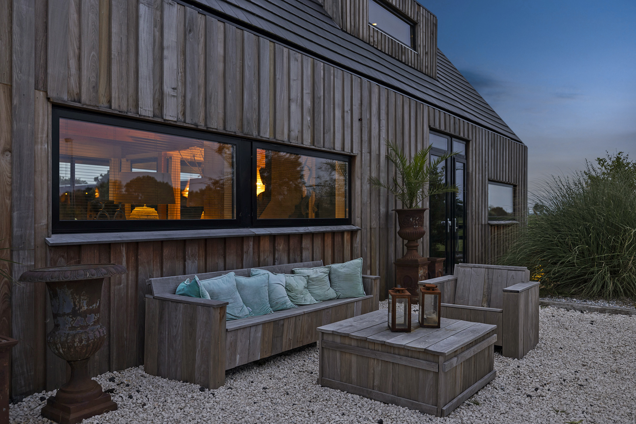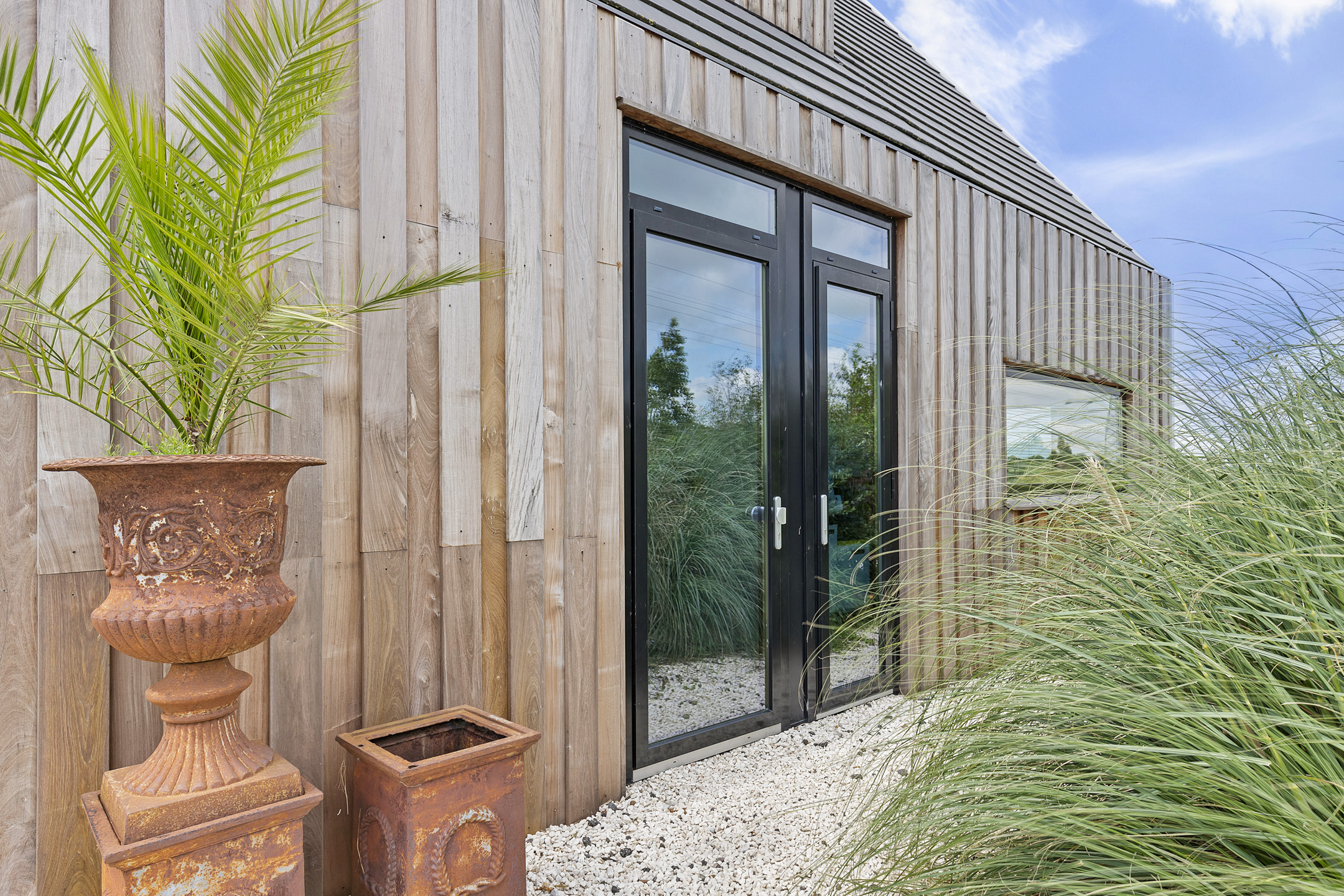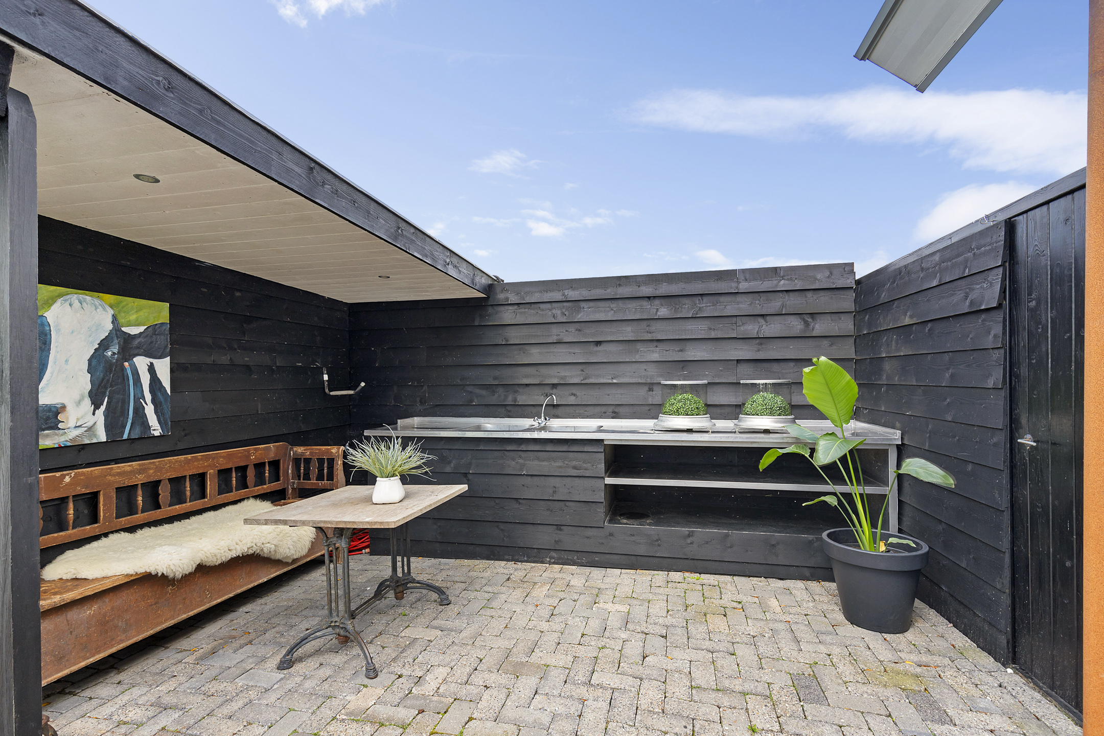 De met de woning in carré opgestelde bijgebouwen geven de tuin een besloten intieme sfeer. In het stijlvol houten geïsoleerde tuinhuis met 3 glazen schuifpuien en brede overkapping zijn een ware jachthut en wellnessruimte gesitueerd. De buitenkeuken verbindt het geheel met het woonhuis. Indien gewenst is dit op eenvoudige wijze inpandig te maken.