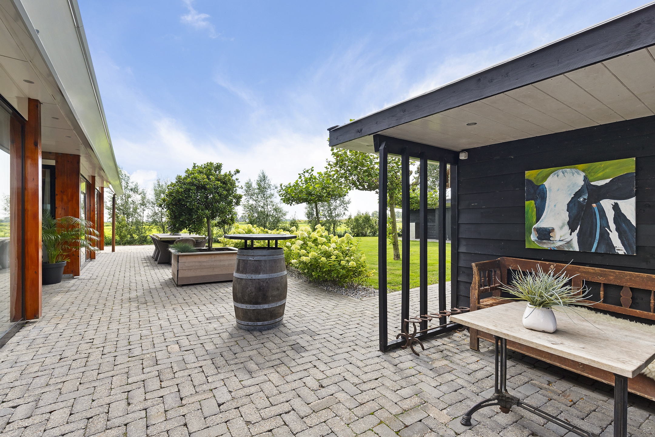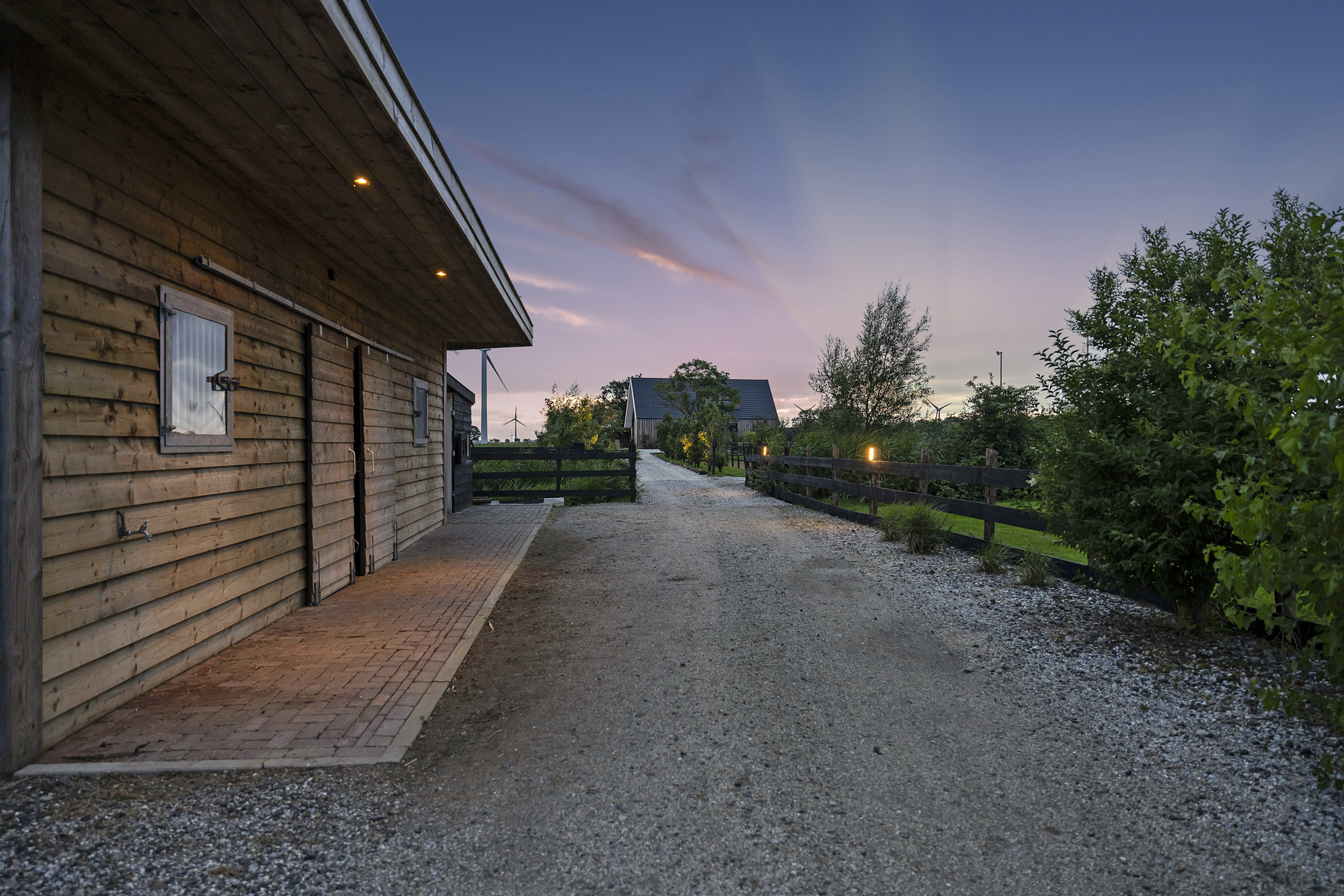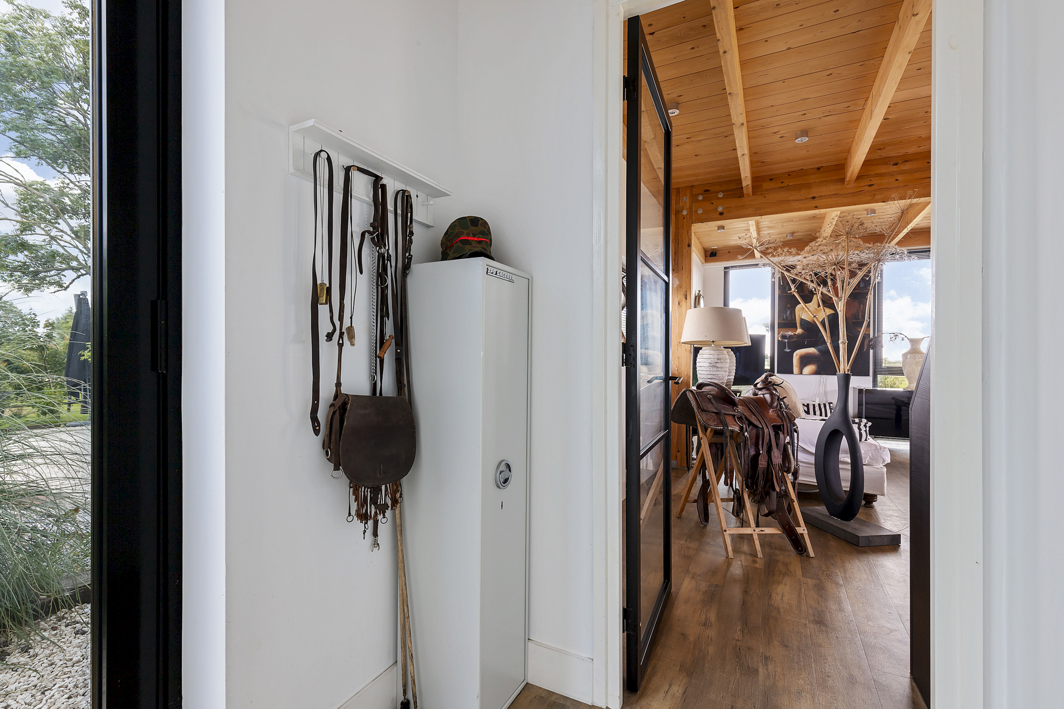 De rust en privacy middenin het groen en de natuurbeleving rondom deze woning is niet te beschrijven maar des te meer te voelen. Een letterlijk verborgen plek, naast het Van Harinxmakanaal, waar je vanuit de woning als stille getuige de masten van de boten in de verte voorbij ziet komen. Waar de rust hooguit wordt onderbroken door het gebalk van een ezel, het gehinnik van een paard en een hond die achter een opvliegende fazant aan gaat. De zonsopgang door de mistige nevel, waar je paard je vrolijk verwelkomt bij de eerste voerbeurt vroeg in de ochtend, je nog in je pyjama onopgemerkt met de hond de ronde doet over je eigen domein. De kinderen de boot het water in lieren voor een korte trip naar het centrum van Harlingen voor een gezellige lunch. Genieten van de sauna en jaccuzi als je de rode zon weg ziet zakken in het water. In de zomer met de glazen pui open, in de winter gezellig cocoonen met vrienden bij de houthaard in de jachthut; deze oase biedt alles voor thuis zijn en niet meer weg willen in optima forma.
