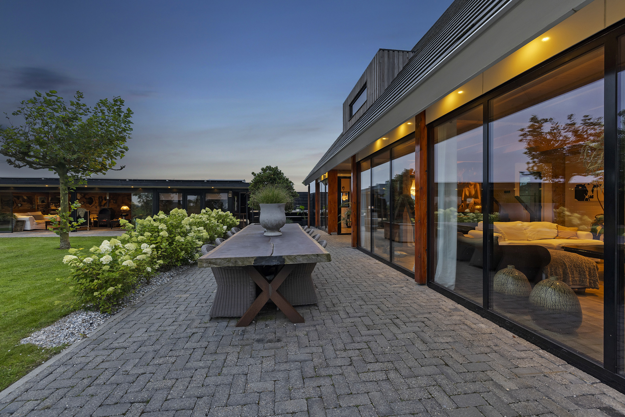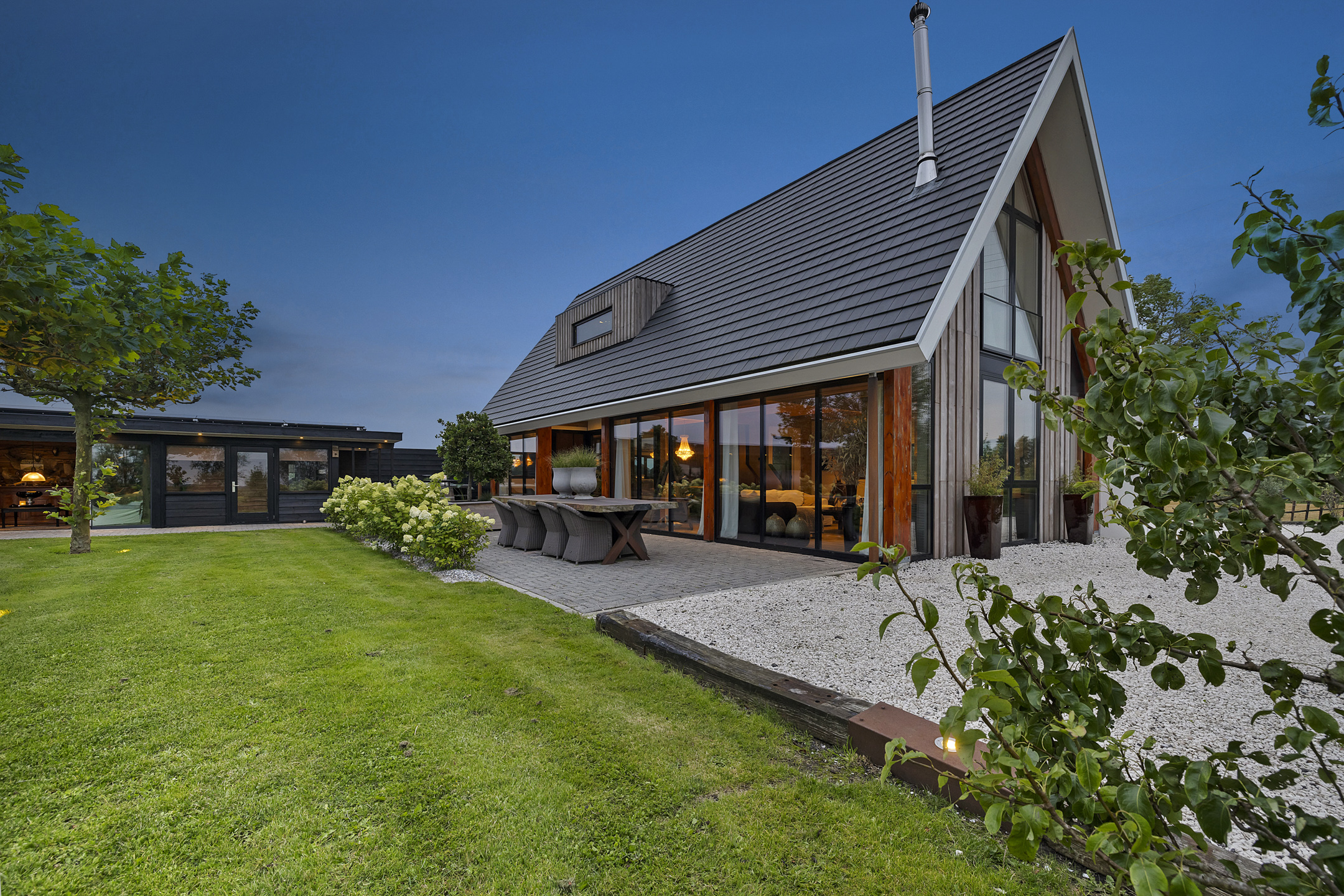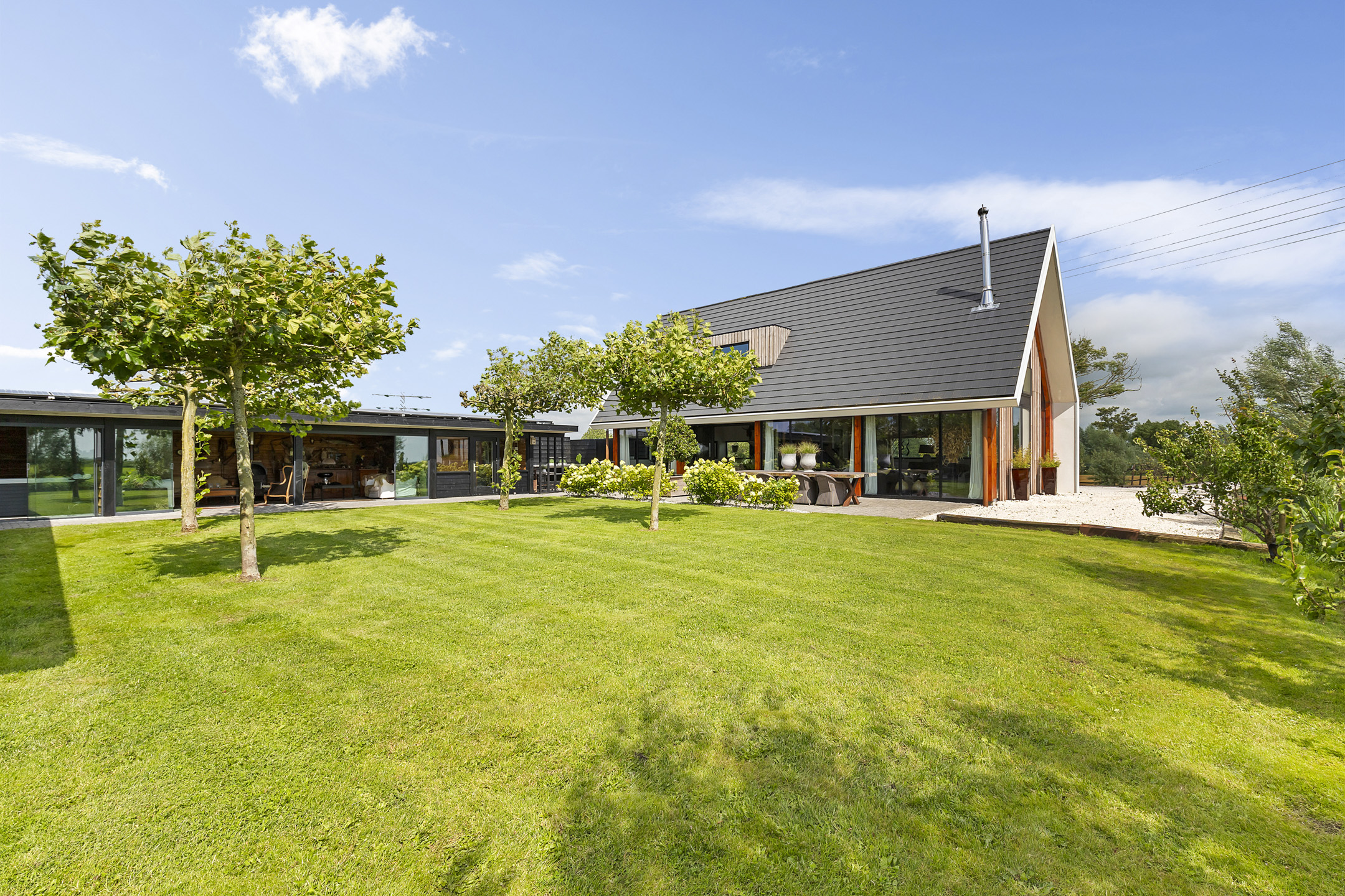 De sfeervolle, volledig geïsoleerde nagenoeg energie neutrale woning is gebouwd in 2019. Er is gebruik gemaakt van duurzame onderhoudsvriendelijke materialen als IPE-hardhouten gevelbekleding, luxe brede overstekken, 40 zonnepanelen, warmtepomp, vlakke pannen, zink en kunststof. Bij het ontwerp stonden privacy, ontspanning en natuurbeleving voorop. De stijlvolle zwart gebeitste bijgebouwen nu in gebruik als sauna, wellness, jachthut, houtopslag, riante geïsoleerde berging/werkplaats, stallen en werktuig- en botenopslag bieden alle mogelijkheden voor een maximaal woongenot.