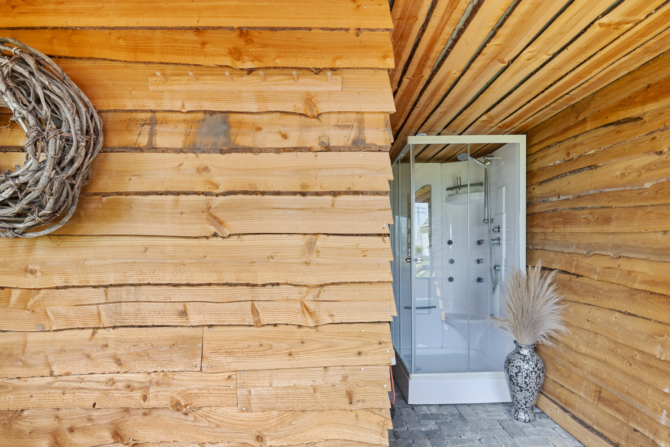 De wellness en jachthut zijn aan de binnenkant rustiek betimmerd en voorzien van houtkachel, lichtspots, jaccuzi, sauna, stoomdouche, stroom en water. Een fantastische ruimte die de woonbeleving maximaliseert en uitnodigt om met vrienden bijeen te komen.