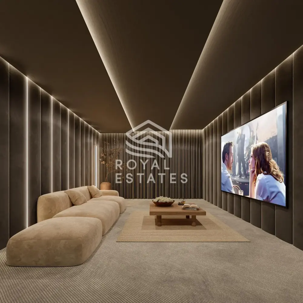 Met een woonoppervlak van 423 m² op een perceel van 812 m² is de villa opgebouwd rond strakke lijnen, lichte interieurs en royale plafondhoogtes van 3,75 tot 3,85 meter. De architectuur kenmerkt zich door witte pleistergevels met details van natuurlijk hout, open leefruimtes en een moderne keuken die het middelpunt vormt voor samenzijn met familie en vrienden. Vijf tweepersoonsslaapkamers, elk met een eigen en-suite badkamer, bieden volop comfort en privacy. De master suite beschikt bovendien over een vrijstaand bad voor totale ontspanning.