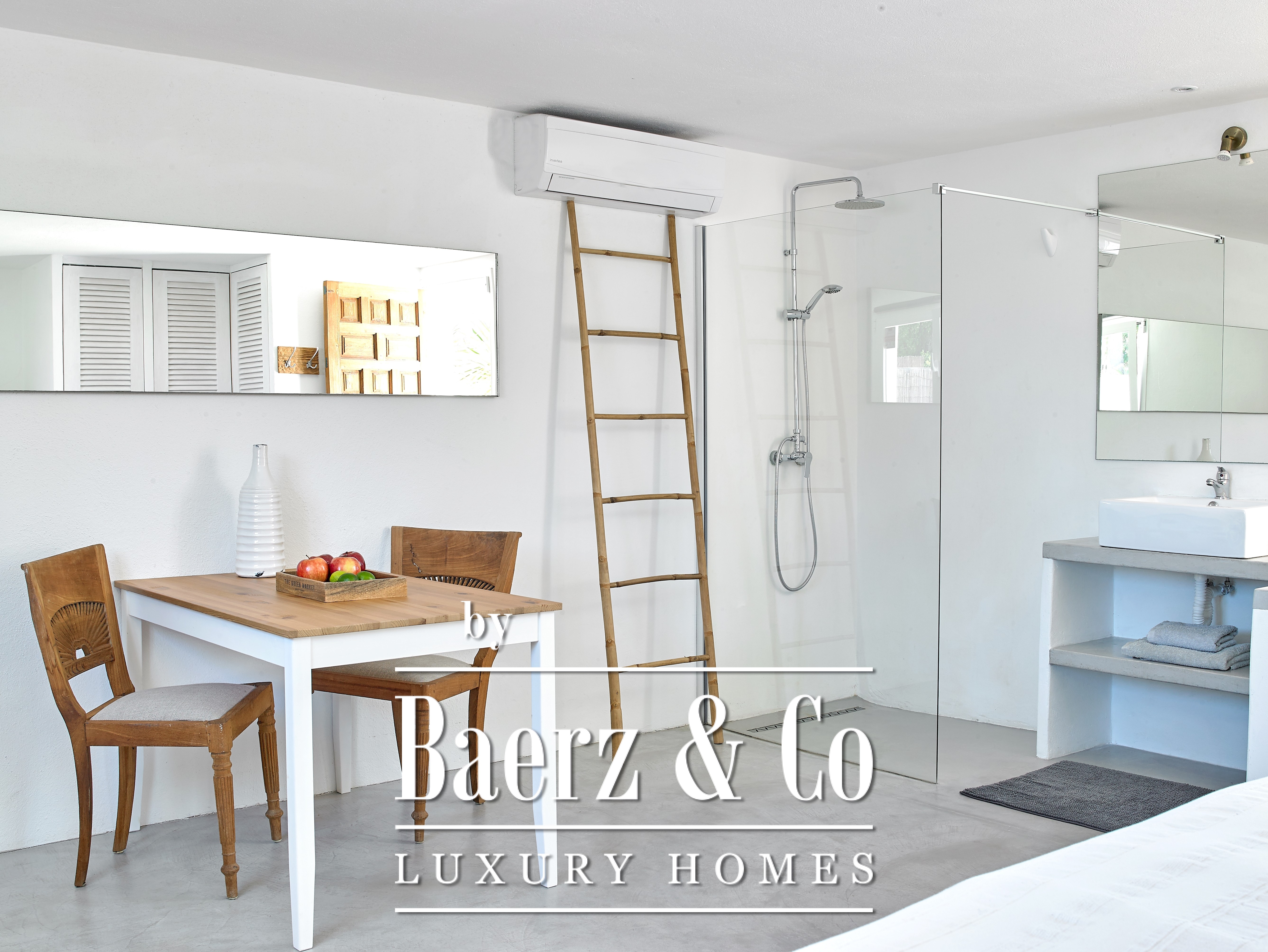 De villa kan naar wens functioneren als één geheel of als zelfstandige appartementen. De buitenruimtes zijn ontworpen voor dineren in de open lucht, ontspanning en het beleven van het karakteristieke Ibiza-licht. Met in totaal negen slaapkamers, zeven badkamers, twee zwembaden, dakterrassen en moderne voorzieningen zoals een alarmsysteem, is dit een zeldzame kans om een veelzijdig object te verwerven op een blijvend aantrekkelijke locatie.