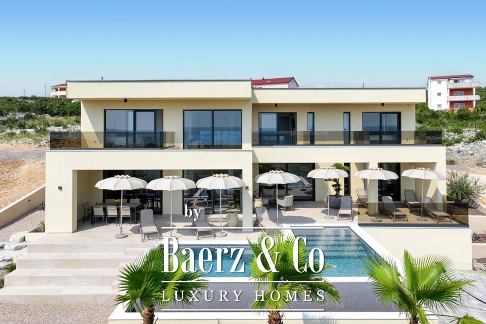 Villa Zadar Maslenica met zeezicht belichaamt een visie van ingetogen kustelijke elegantie. Gebouwd in 2024 en voorzien van 254 m² woonoppervlak op een perceel van 654 m², ligt deze woning op slechts 620 meter van de Adriatische kust, met uitzicht op de Novigradzee en één kilometer van het centrum van Maslenica. De doordachte indeling begint met een gastvrije begane grond, waar een lichte hal en een fraai ingerichte slaapkamer samenvloeien met een open keuken, eetkamer en living. Vanuit elke ruimte is er directe toegang tot het terras, dat uitkomt op een zwembad van 40 m², een ingebouwde jacuzzi en een zonovergoten zonneterras, allemaal omgeven door een zorgvuldig aangelegde tuin. De interne trap leidt naar het slaapgedeelte, met drie slaapkamers, ieder voorzien van en-suite badkamer en gedeeltelijk overdekte terrassen met rustgevend uitzicht op zee. Vier badkamers, vloerverwarming, airconditioning, aluminium kozijnen met elektrische rolluiken en een hoogwaardige thermische gevel zorgen voor dagelijks comfort en stille efficiëntie. Op het terrein zijn vier parkeerplaatsen en een aparte berging aanwezig. Deze villa in Maslenica ligt tussen historische olijfgaarden en het immer aanwezige blauw van de Novigradzee, omzoomd door de rivier de Zrmanja en het Velebitgebergte, en vormt een verfijnd toevluchtsoord aan de Dalmatische kust. Voor wie een luxe villa te koop zoekt in Zadar Maslenica, biedt dit adres een harmonieuze balans tussen kwaliteit, authenticiteit en het subtiele ritme van het mediterrane leven.