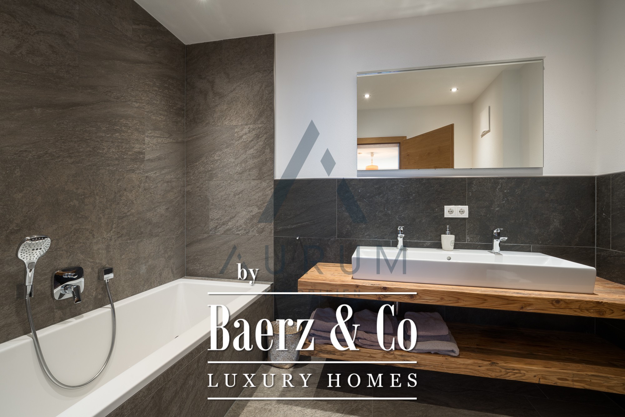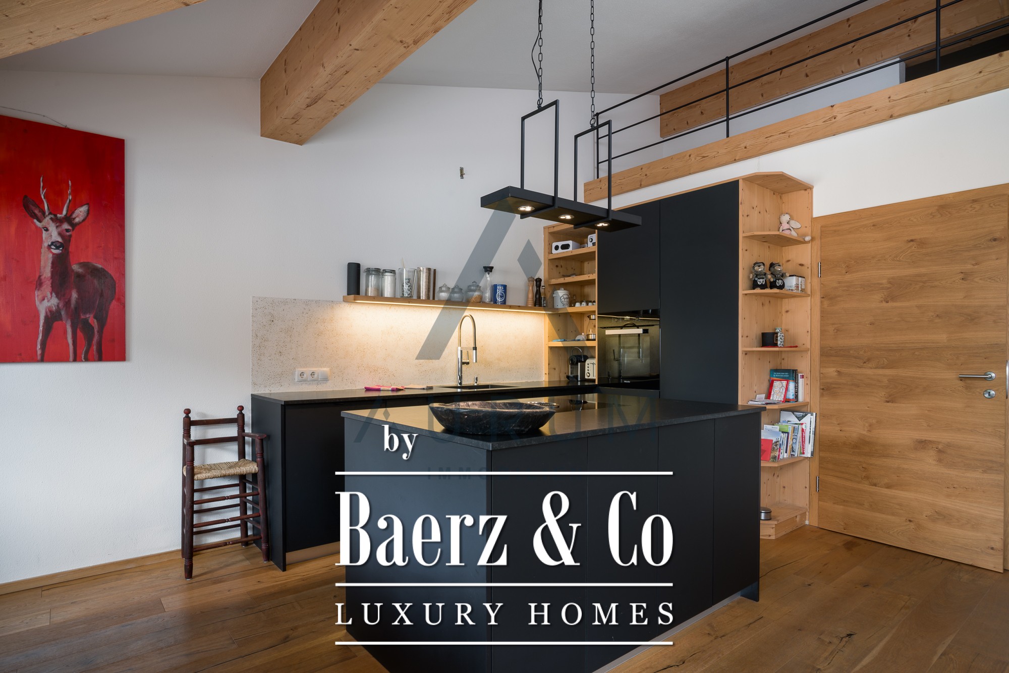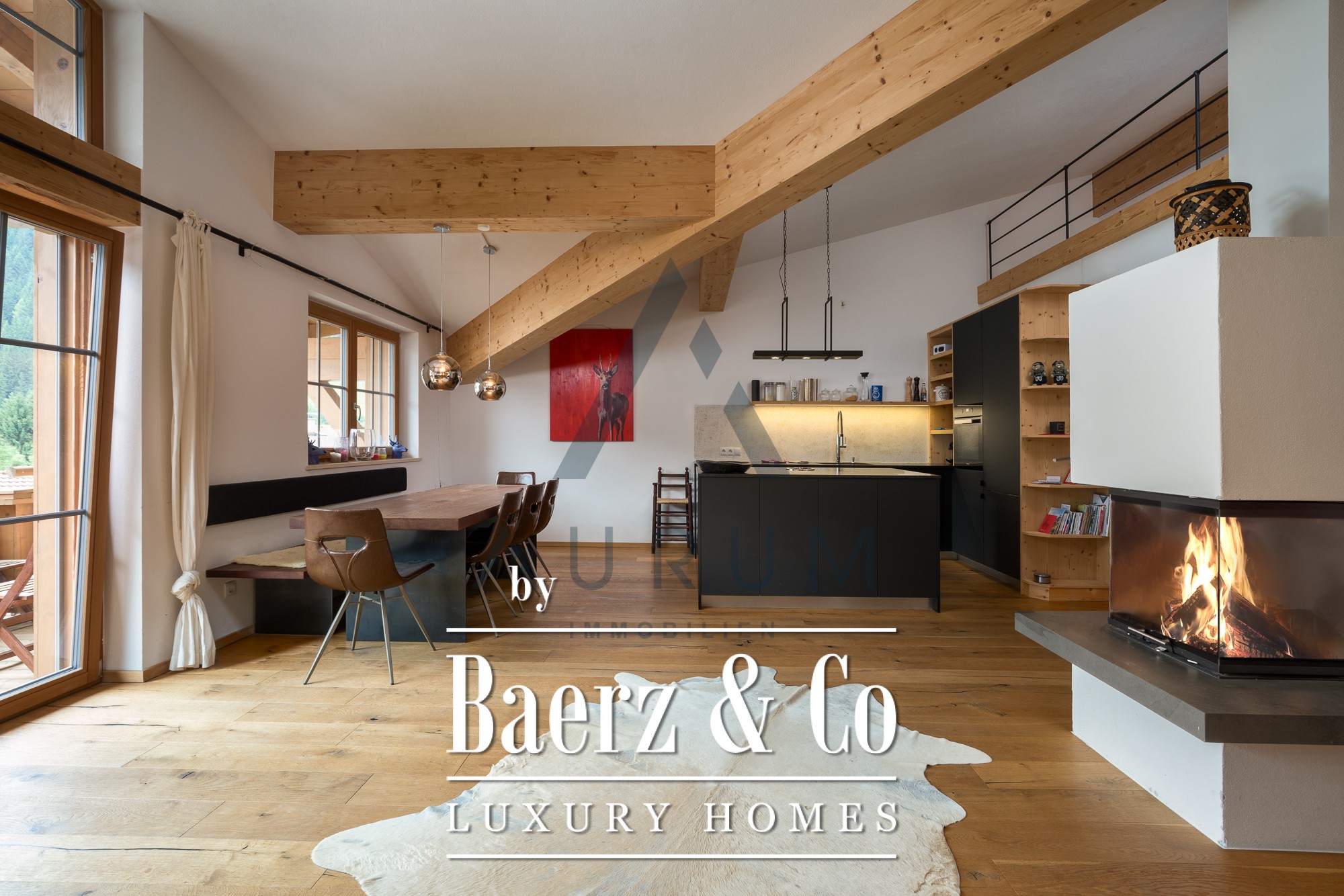Dit penthouseappartement in Kirchberg in Tirol bevindt zich op een bijzonder rustige locatie in een eigentijds gebouw dat in 2016 is opgeleverd. De woonbeleving begint in een ruime entree die overgaat in een verfijnde woon- en eetkamer, waar een open haard en zichtbare dakspanten direct uitnodigen. Natuurlijk licht valt op eiken vloerdelen, terwijl grote porseleinen tegels en Venetiaanse jaloezieën een subtiel accent geven aan de elegante ruimte. De professionele keuken is zorgvuldig afgescheiden maar visueel verbonden, voorzien van merkapparatuur en biedt directe toegang tot een privébalkon met uitzicht over het landschap.