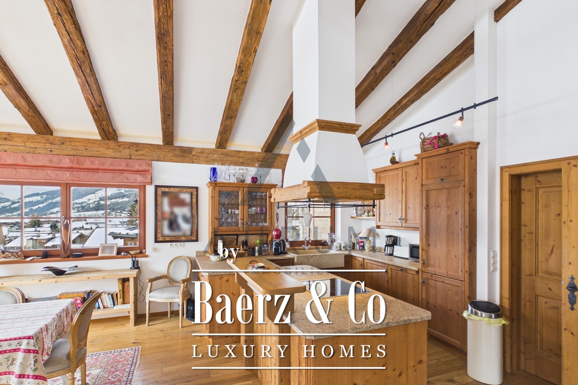 Penthouse maisonette in Kirchberg in Tirol is een zeldzaam alpine woonhuis, met 197 m² zorgvuldig ingedeelde leefruimte verdeeld over drie verdiepingen, discreet gelegen op een zonrijke plek net boven het dorpscentrum. Deze penthouse maisonette verwelkomt u met een traditioneel geïnspireerd, lichtovergoten bovenverdieping. De woon- en eetkamer, geaccentueerd door antieke houten balken en een open haard, loopt over in een landelijke keuken en een balkon dat een panoramisch uitzicht biedt op de Großer Rettenstein en het Brixental. Vloer-tot-plafond ramen laten het alpenlicht centraal staan, terwijl vloerverwarming en massief houten vloeren zorgen voor een sfeer van duurzame warmte.