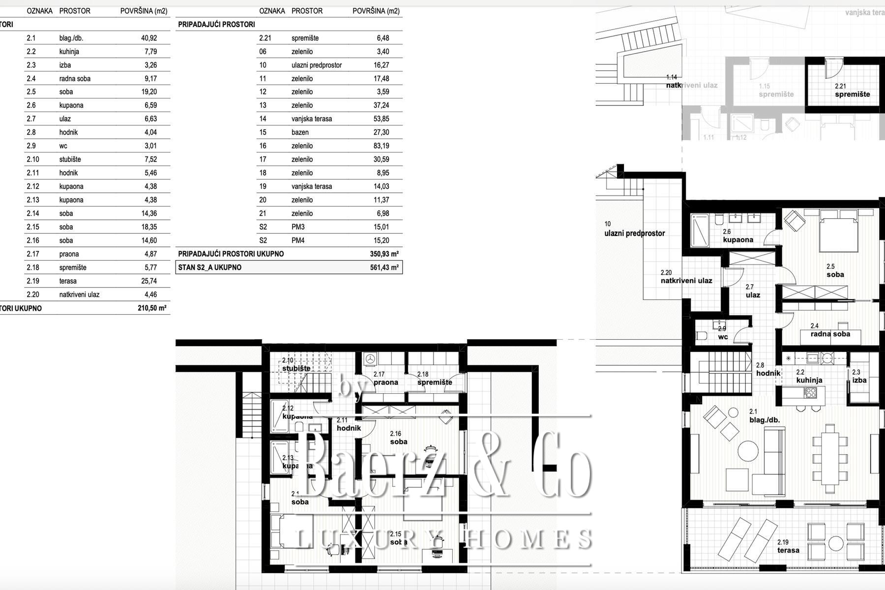 Appartement Kostrena zet een nieuwe standaard voor verfijnd wonen aan de Kroatische Kvarner-kust. Deze woning van 250 m² beslaat twee verdiepingen in een modern, tweelaags gebouw, met vier slaapkamers en een weids uitzicht op zee. De indeling is gecreëerd voor dagelijks comfort en ingetogen luxe, met een woon- en eetkamer van 42,20 m² die naadloos overloopt in een eigentijdse keuken van 7,73 m², perfect voor samenkomen of een moment van rust.