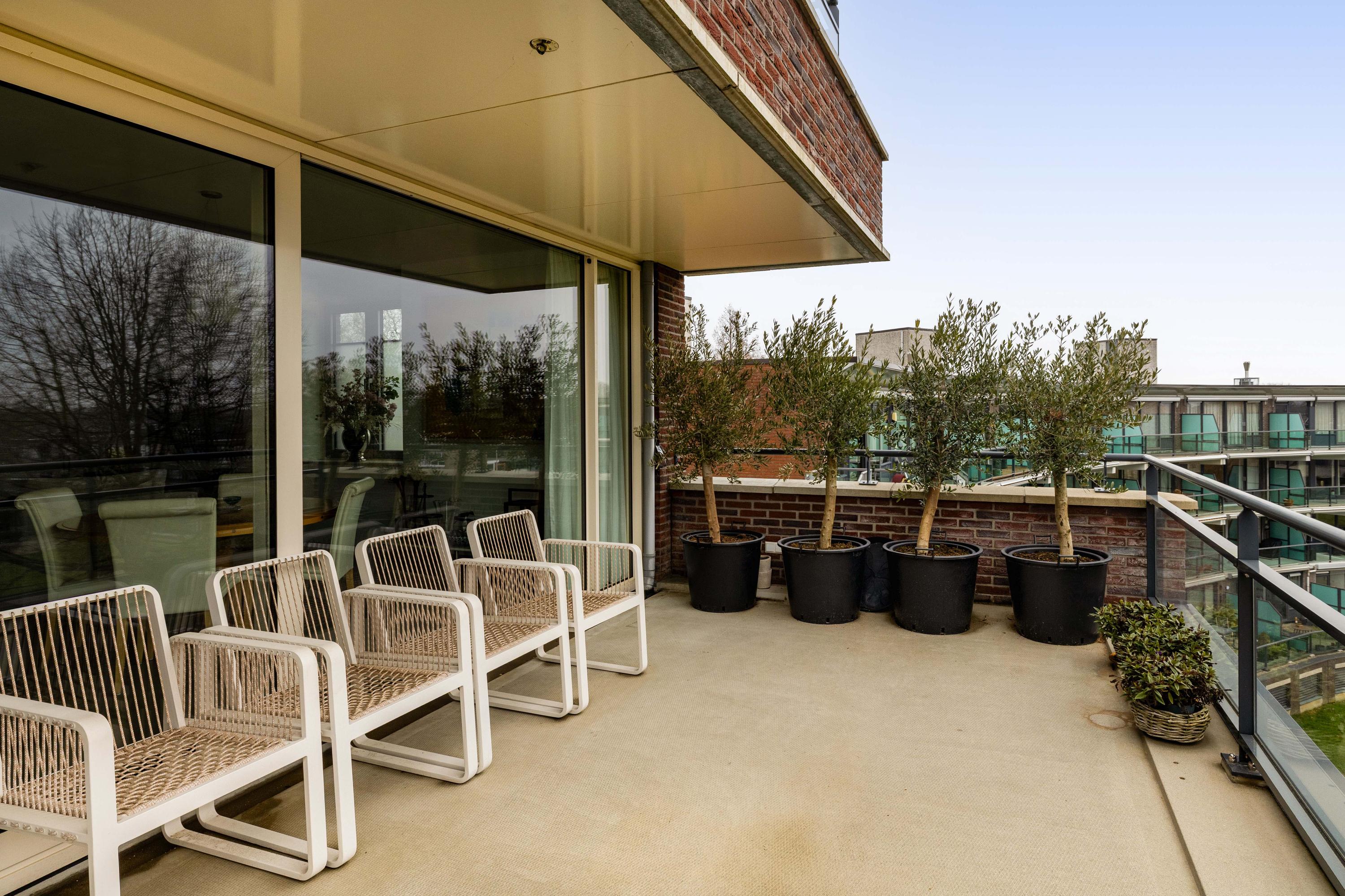 Buitenleven speelt hier een grote rol. Het grote terras op het zuidoosten is echt een verlengstuk van de living. Ruim opgezet, zonnig en met vrij uitzicht over groen en water. Een fijne plek voor een kop koffie in de ochtend, een lunch in de zon of een goed glas wijn aan het einde van de dag. Het tweede, kleinere terras aan de noordwestzijde biedt juist verkoeling en afwisseling, ideaal op warme dagen.