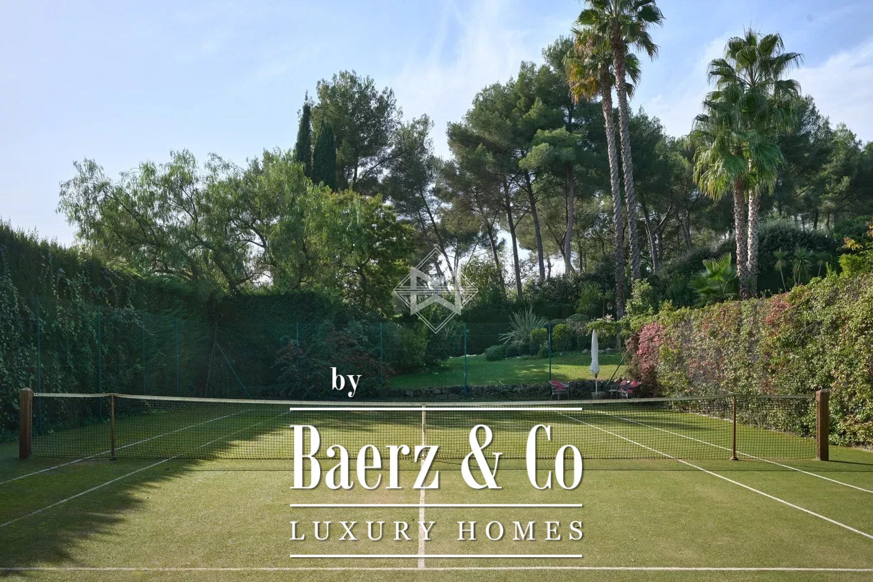 Het landgoed is omzoomd door 7.566 m² zorgvuldig onderhouden tuinen, doorspekt met gazons onder palmbomen, stijlvolle terrassen en talrijke buitenruimtes. Gezamenlijke momenten ontstaan bij het zwembad of de tennisbaan, waar ruimte is voor ontspannen middagen en actieve ontmoetingen. Binnen zorgen doordachte voorzieningen—airconditioning, open haarden, sauna—samen met praktische details als een alarmsysteem, elektrische toegangspoort en beregeningsinstallatie voor een aangenaam leefklimaat.
