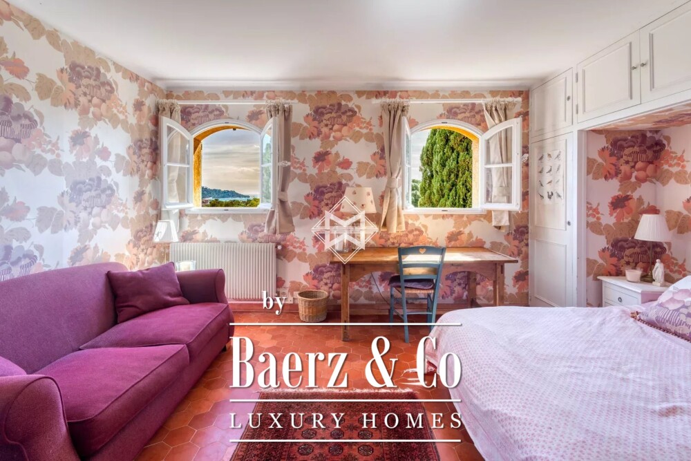 De tuinen zijn met zorg aangelegd en combineren elegante bloemperken, gevarieerde beplanting en een boomgaard. Een zwembad van 12 x 6 meter, met poolhouse en wintertuin, nodigt uit tot het buitenleven. Extra voorzieningen zijn onder meer een carport, ruime parkeergelegenheid, irrigatie- en verlichtingssystemen, een beheerderswoning, intercom, elektrische toegangspoort en aansluiting op het riool. Dankzij de zuidelijke oriëntatie is er veel warm licht en het uitzicht op zee bevestigt het unieke karakter. Dit bijzondere eigendom biedt een zeldzaam evenwicht tussen landelijke sereniteit en de levendige ambiance van de Franse Rivièra.