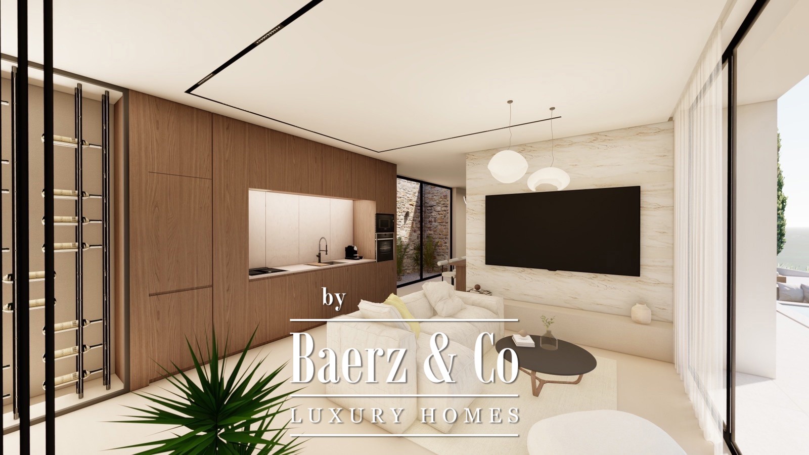 De villa wordt gebouwd met gewapend beton, beschikt over geavanceerde isolatie en een ondergronds ventilatiesysteem, wat zorgt voor langdurige duurzaamheid en uitstekende energieprestaties. De binnenruimtes omvatten een open woon- en eetgedeelte, grote glazen puien die overvloedig daglicht en panoramische vergezichten bieden, en een moderne keuken met hoogwaardige apparatuur, wijnklimaatkast en smart home-technologie. Vier badkamers vervolmaken de doordachte indeling en bieden functionele elegantie.