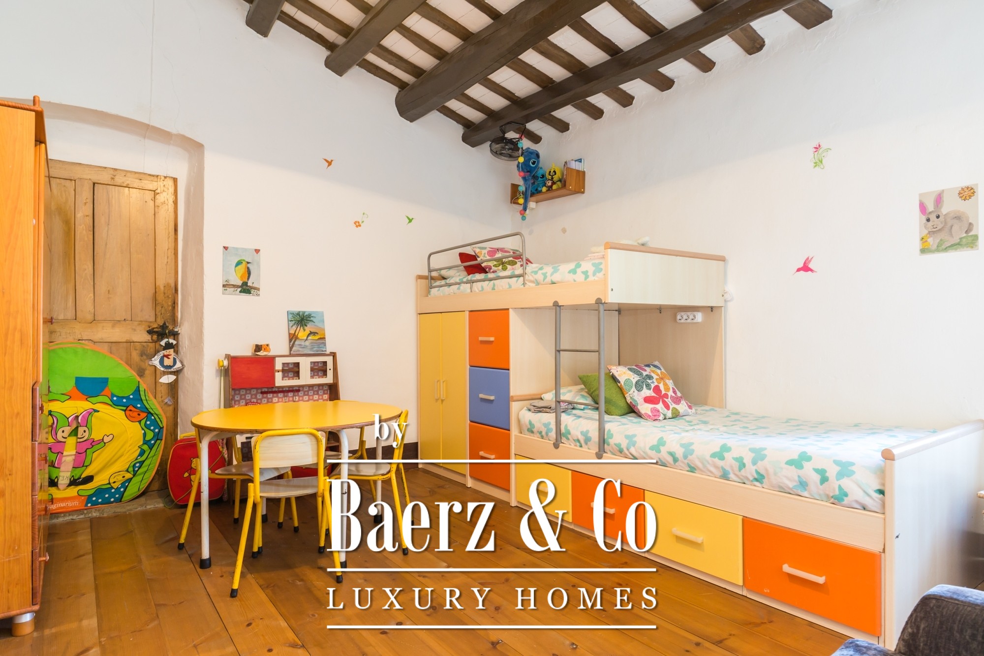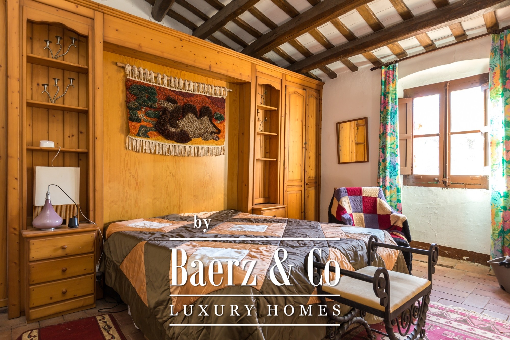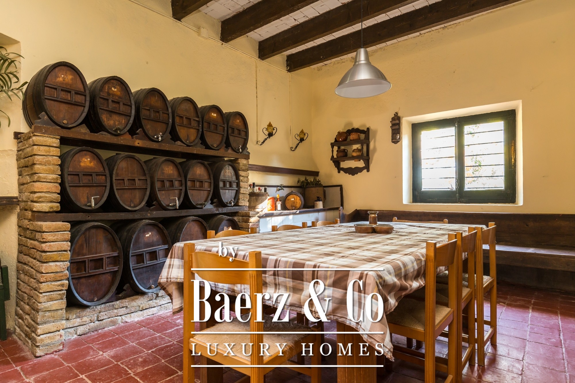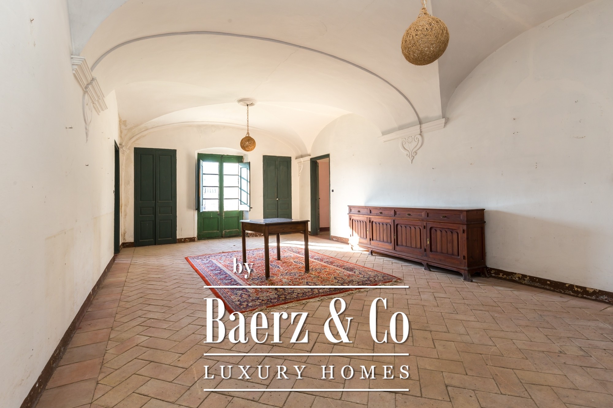 De hoofdwoning beschikt over zeven slaapkamers en vier badkamers. Boven bieden de suites privéterrassen met weids uitzicht. Hoge plafonds, lichte ruimtes en authentieke bouwdetails onderstrepen het historische karakter. Er zijn twee woon- en eetkamers, een royale leefkeuken en een kantoor-bibliotheek aansluitend op een beschutte privétuin. Ruime opslagmogelijkheden en bijgebouwen zorgen voor praktische flexibiliteit.
