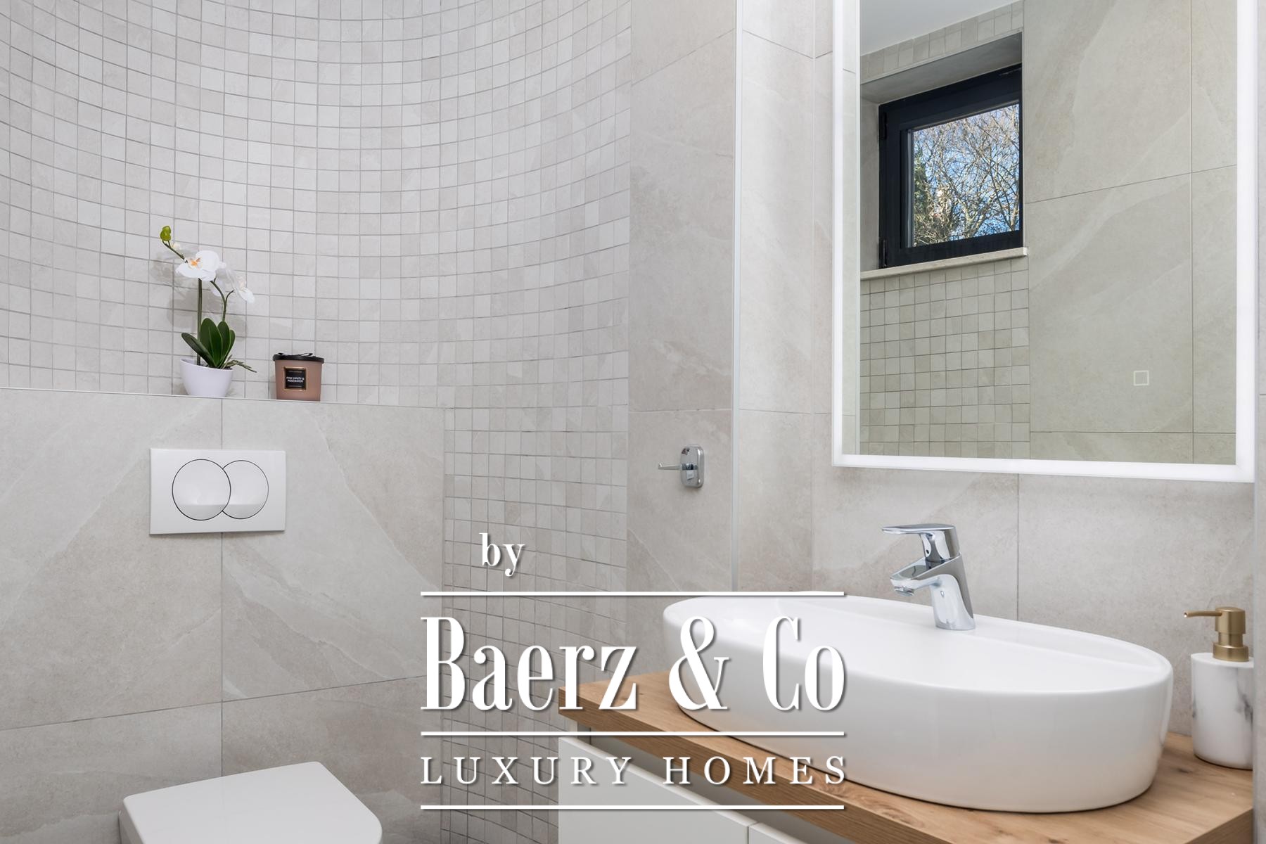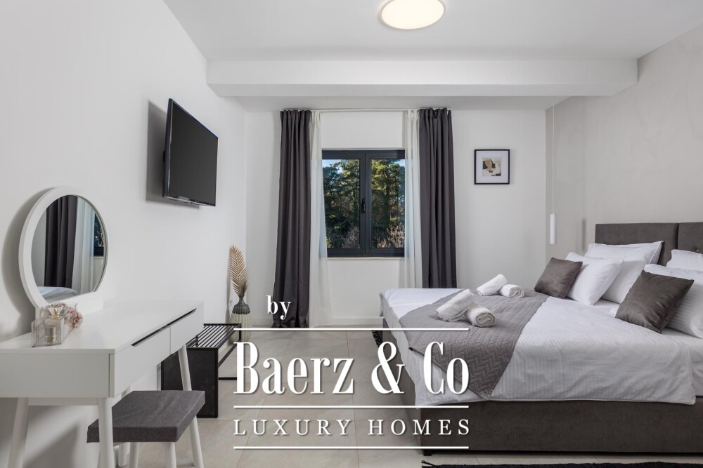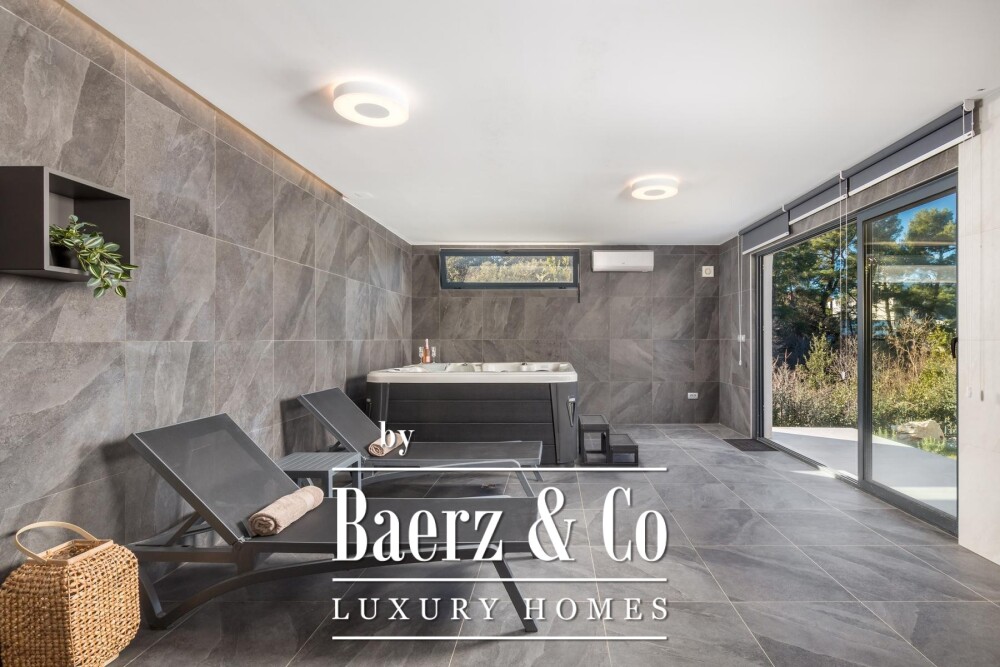 De fraai aangelegde tuin van 1.920 m² vormt een groene, besloten oase. Een verwarmd zwembad vormt het centrale middelpunt buiten, terwijl de interne wellnessruimte van de villa—50 m² met sauna, jacuzzi en een kleine fitness—jaarrond een welkome toevluchtsoord biedt. In een apart gebouw van 20 m² is personeel ondergebracht met eigen keuken en badkamer, voor maximale privacy en comfort. Vloerverwarming en airconditioning zorgen in elk seizoen voor een aangenaam binnenklimaat. Parkeervoorzieningen en hoogwaardige afwerkingen maken deze woning tot een thuis van duurzame klasse en ingetogen luxe. Zeezichtvilla’s te koop in Kroatië op dit niveau zijn zeldzaam in hun gevoel van authenticiteit en architectonische gratie.