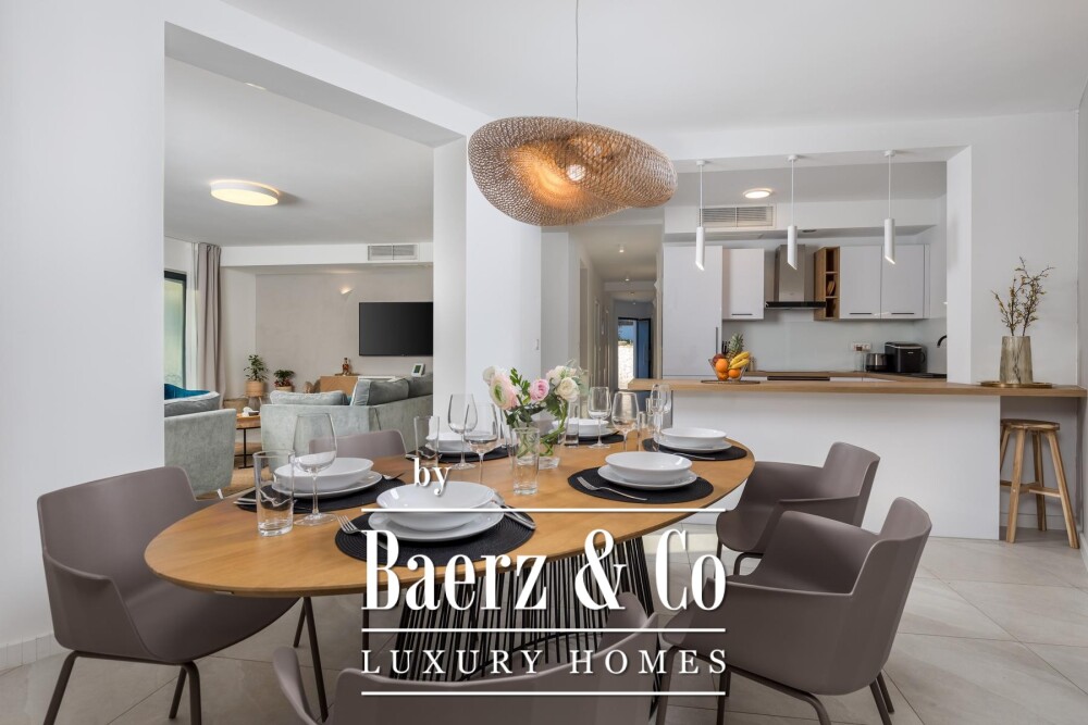 Villa Malinska-Dubašnica staat werkelijk aan de eerste rij aan zee, op slechts 50 meter van de kustlijn en 500 meter van het centrum van Malinska. Deze villa biedt een uitzonderlijk gevoel van privacy, terwijl alle lokale voorzieningen binnen handbereik blijven. De totale woonoppervlakte van 320 m² is verdeeld over twee afzonderlijke appartementen, elk ontworpen voor comfort en verfijnd wonen. Beide appartementen beschikken over stijlvolle woonkamers, volledig uitgeruste keukens, serene eetruimtes en drie slaapkamers met en-suite badkamers. Riante terrassen omlijsten het ononderbroken uitzicht over het Adriatische landschap en brengen licht en ruimte in het dagelijks leven.