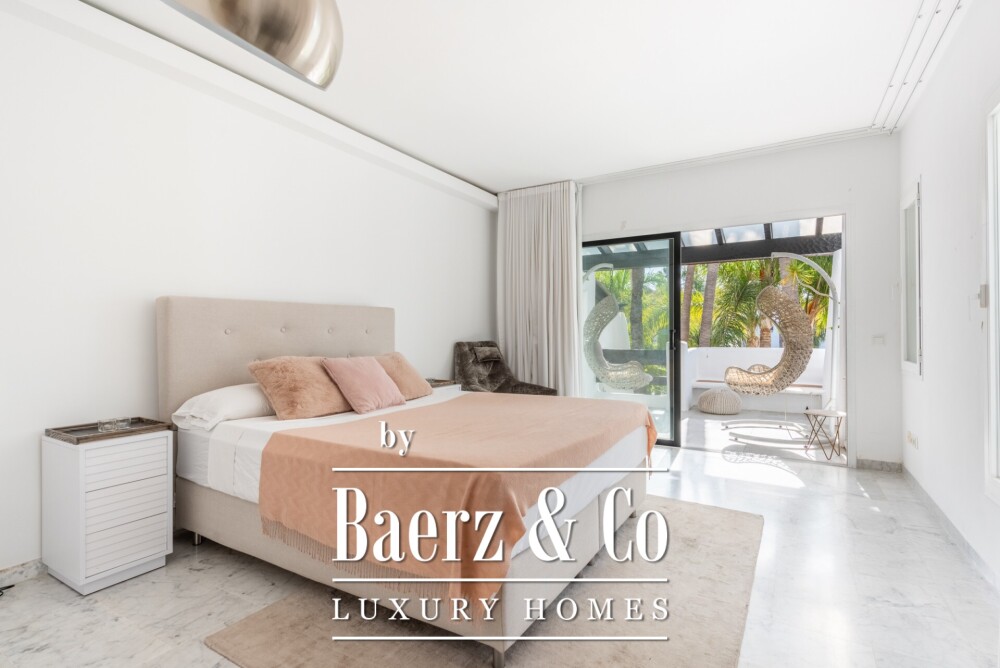 Recent opgefrist in 2016 en volledig gemeubileerd aangeboden, beschikt het appartement over een moderne keuken, drie slaapkamers en twee badkamers. De op het zuiden gelegen terrassen bieden een serene blik op de Perzische tuin en het zwembad, terwijl het panoramische uitzicht reikt tot de tennisclub en het silhouet van de La Concha berg. Natuurlijk licht stroomt subtiel door de leefruimten en nodigt uit tot een ontspannen dagelijks ritme.