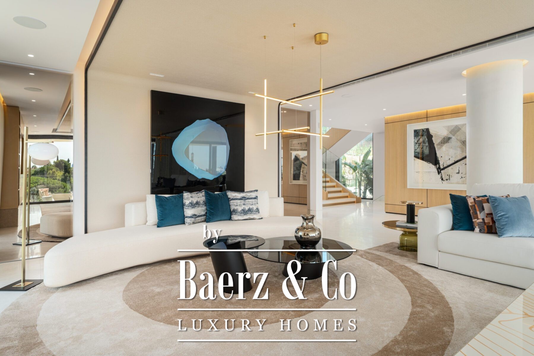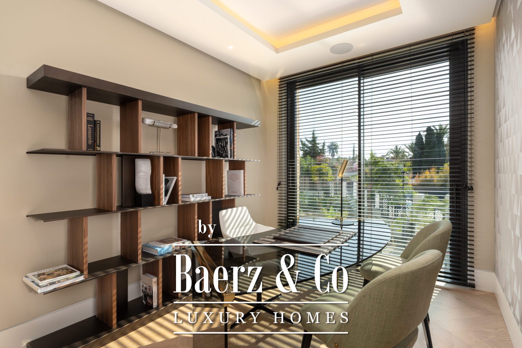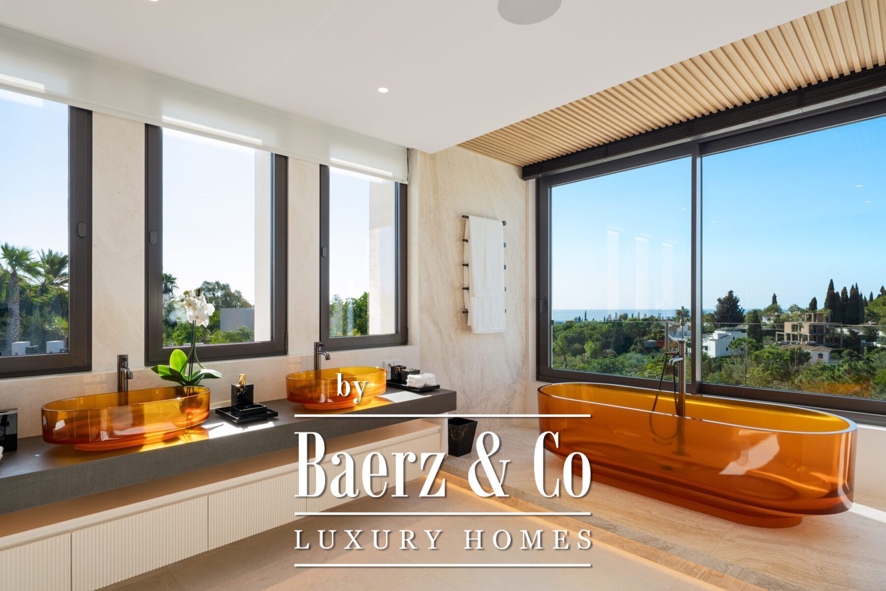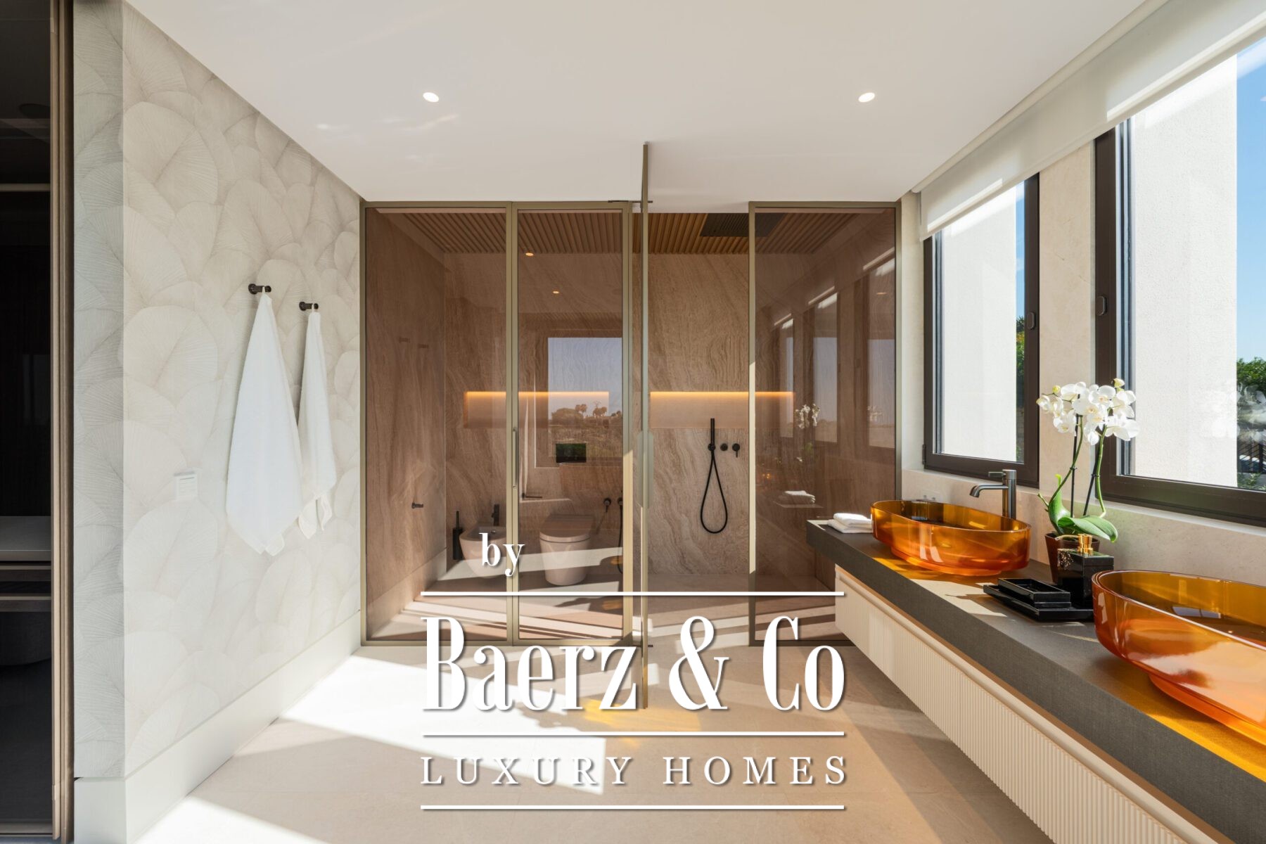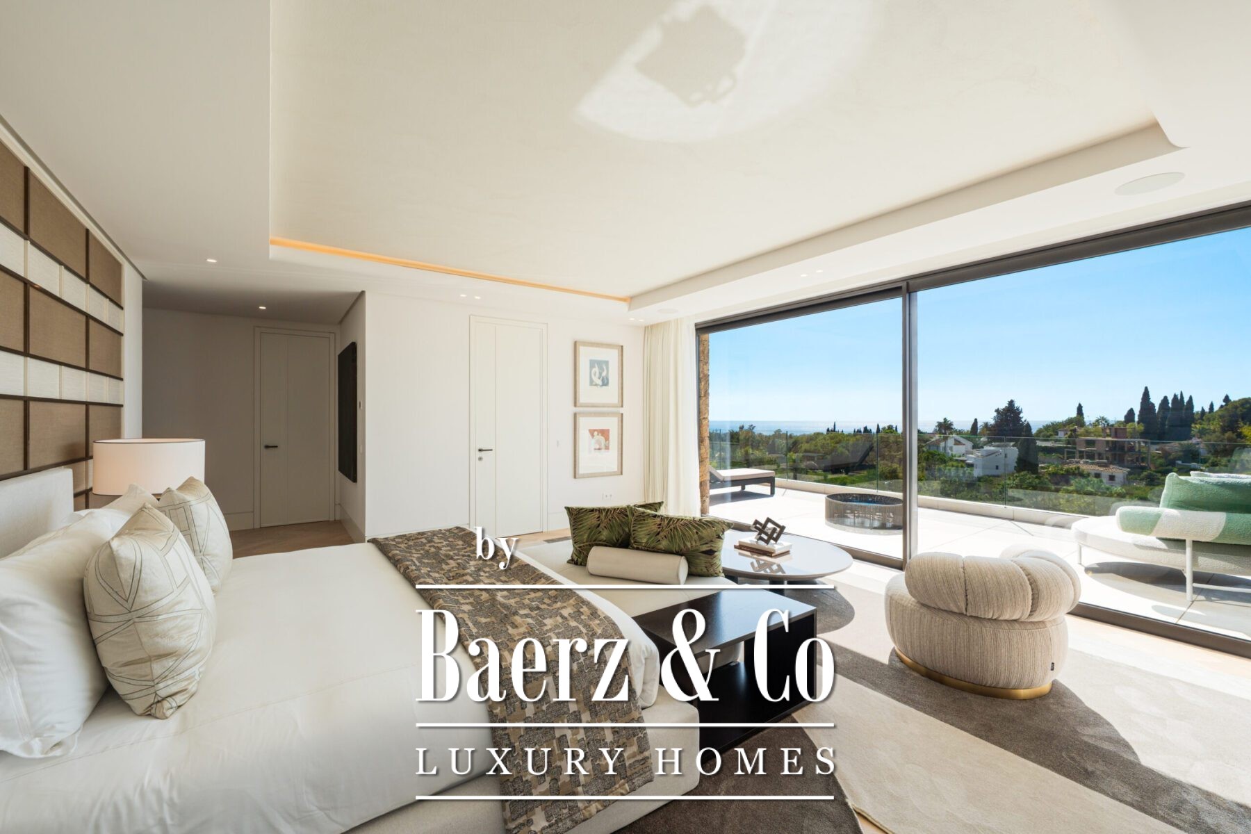 Boven bevindt zich de mastersuite met weidse vergezichten, een inloopkast, verfijnde badkamer en een eigen terrassuite. Een extra gastensuite en een rustige thuiswerkplek maken de bovenste verdieping compleet, waarbij een lift alle etages met elkaar verbindt. Deze nieuwe, beveiligde en volledig uitgeruste villa biedt geavanceerde voorzieningen zoals airconditioning, vloerverwarming, 24-uurs beveiliging en een privégarage. Deze luxe villa te koop in Marbella Hill Club legt een zeldzame harmonie tussen elegantie en comfort. Golf, de zee en hoogwaardige faciliteiten bevinden zich op een steenworp afstand, wat het exclusieve karakter van de locatie en het gevoel van thuiskomen benadrukt.