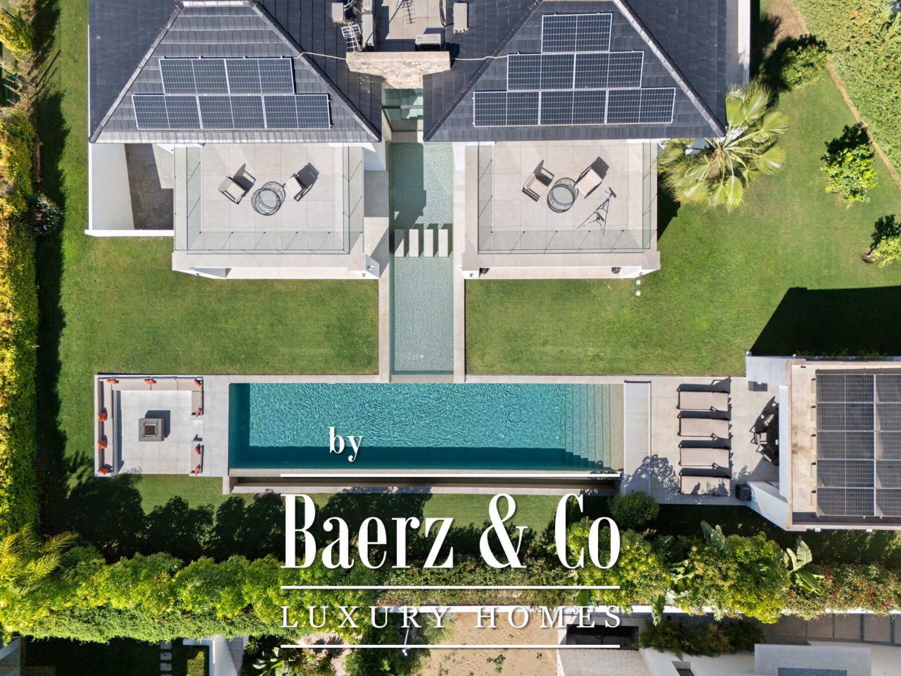 Buiten ligt de focus op een royaal zwembad met een intrekbare cover, omgeven door zonneterrassen en diverse overdekte zitgedeelten. Grenzend aan het zwembad vindt u een lounge met vuurplaats, een buitenkeuken en eetruimte, wat zorgt voor een ontspannen sfeer voor stijlvol buitenleven en entertainment het hele jaar door. Zes slaapkamers en vijf badkamers garanderen privacy en comfort, waarbij elke slaapkamer beschikt over een eigen terras en een eigentijdse afwerking.