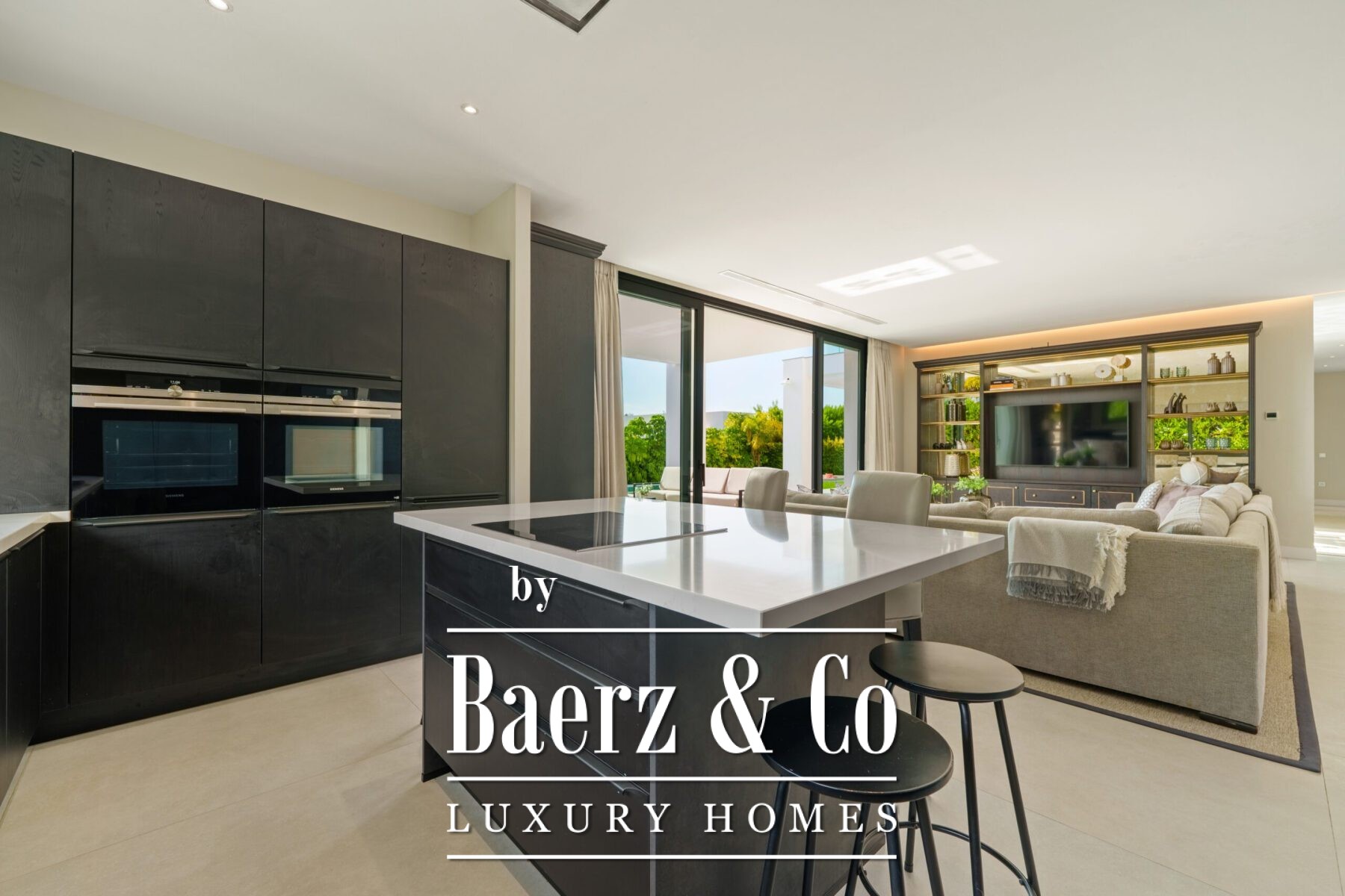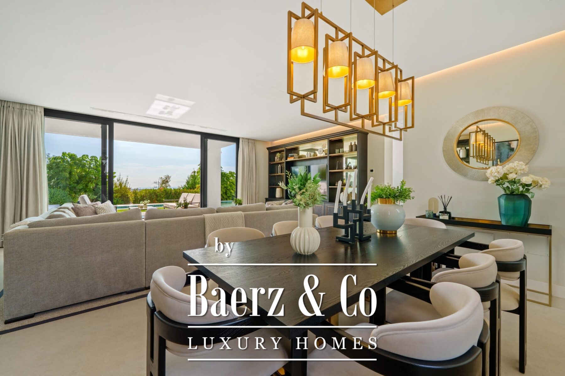 Deze eigentijdse villa in Marbella zet een nieuwe standaard voor modern wonen op een van de meest gewilde locaties van Marbella. De residentie biedt maar liefst 581 m² woonruimte, waar een flexibel open ontwerp de woonkamer, eetkamer en compleet uitgeruste keuken samenbrengt. Vloerhoge glazen schuifdeuren verbinden het interieur moeiteloos met buiten, zodat het natuurlijke licht binnenvalt en u uitzicht geniet over het privéperceel van 1.231 m².