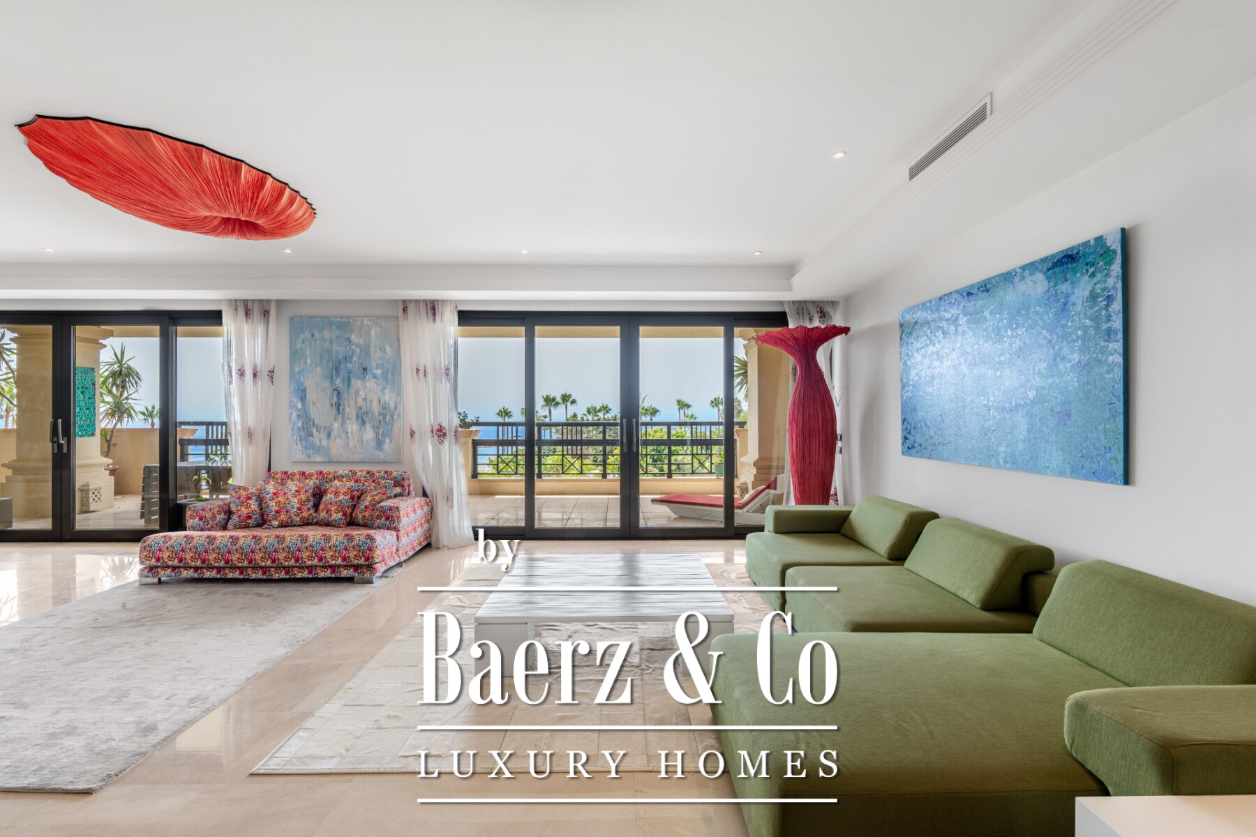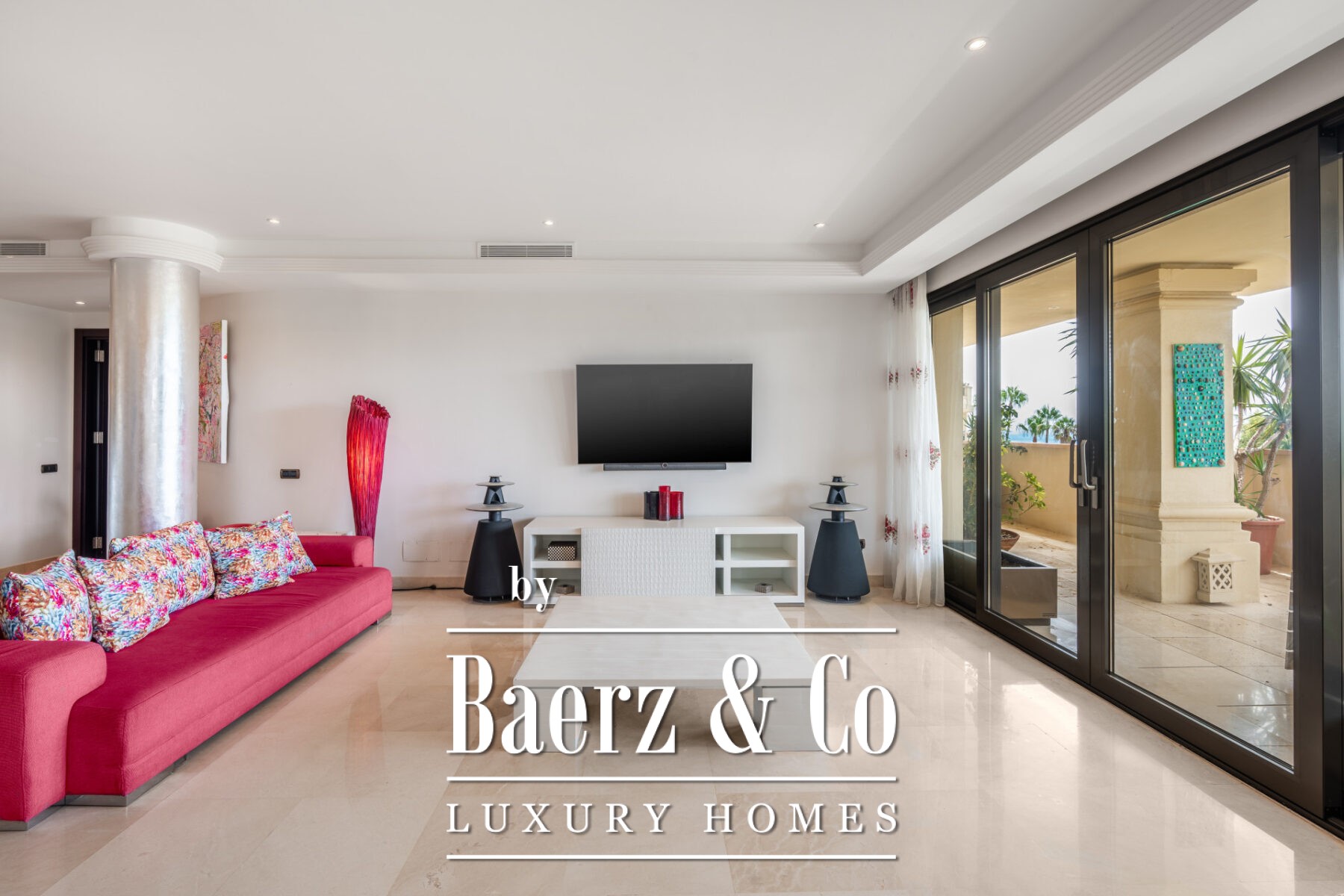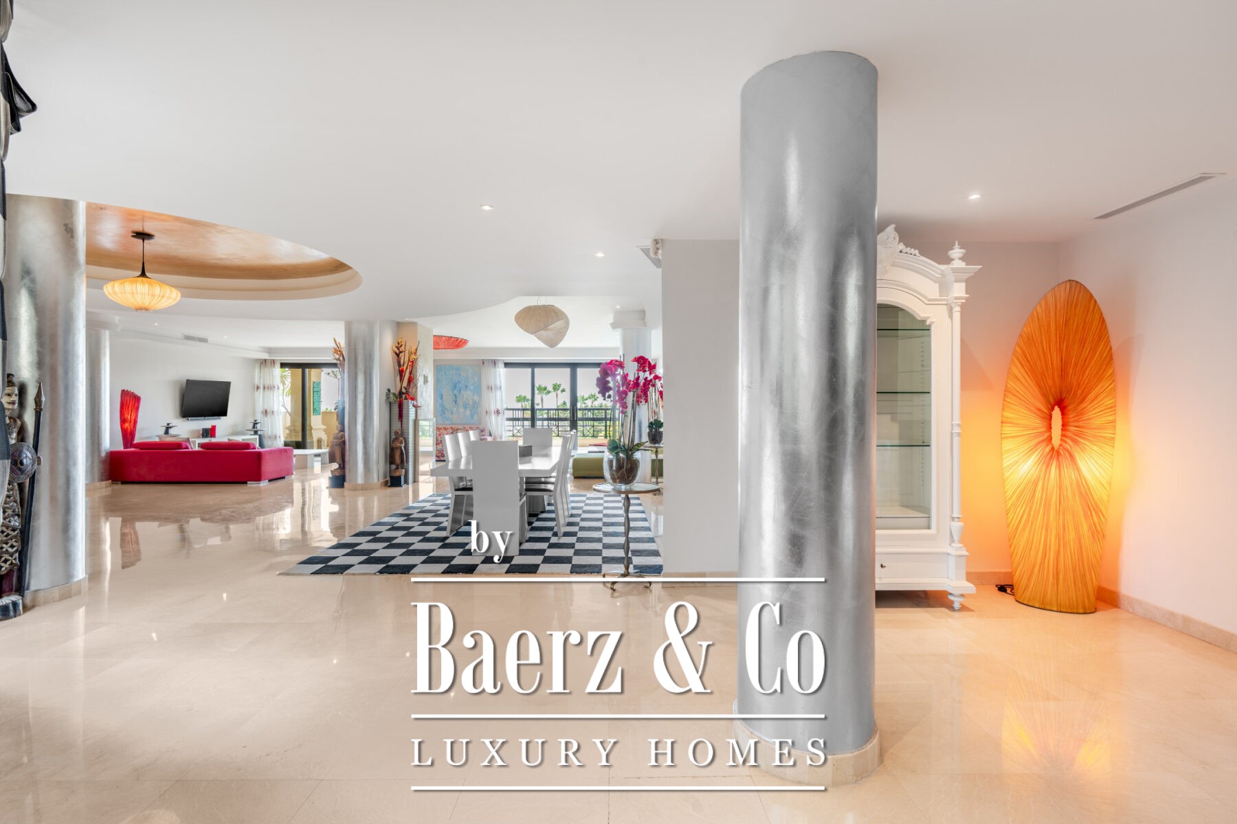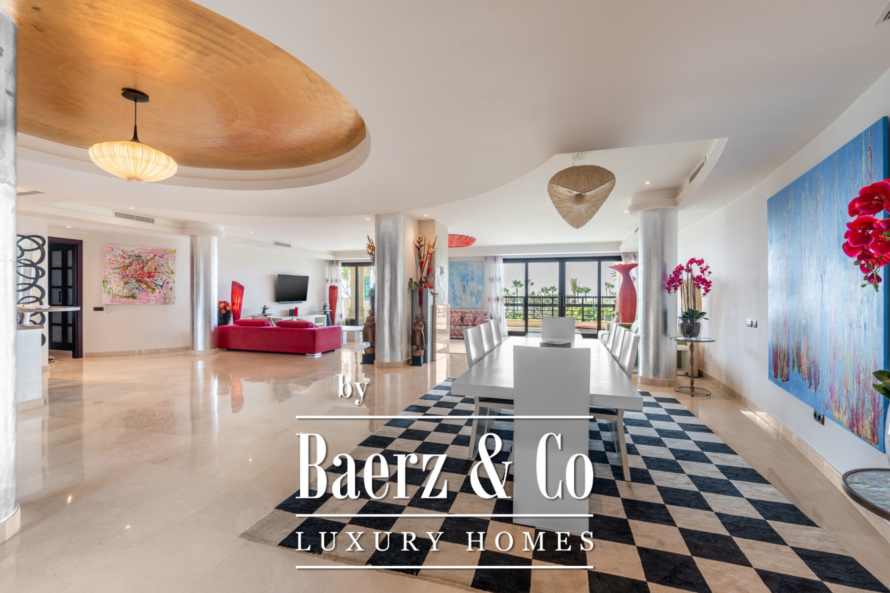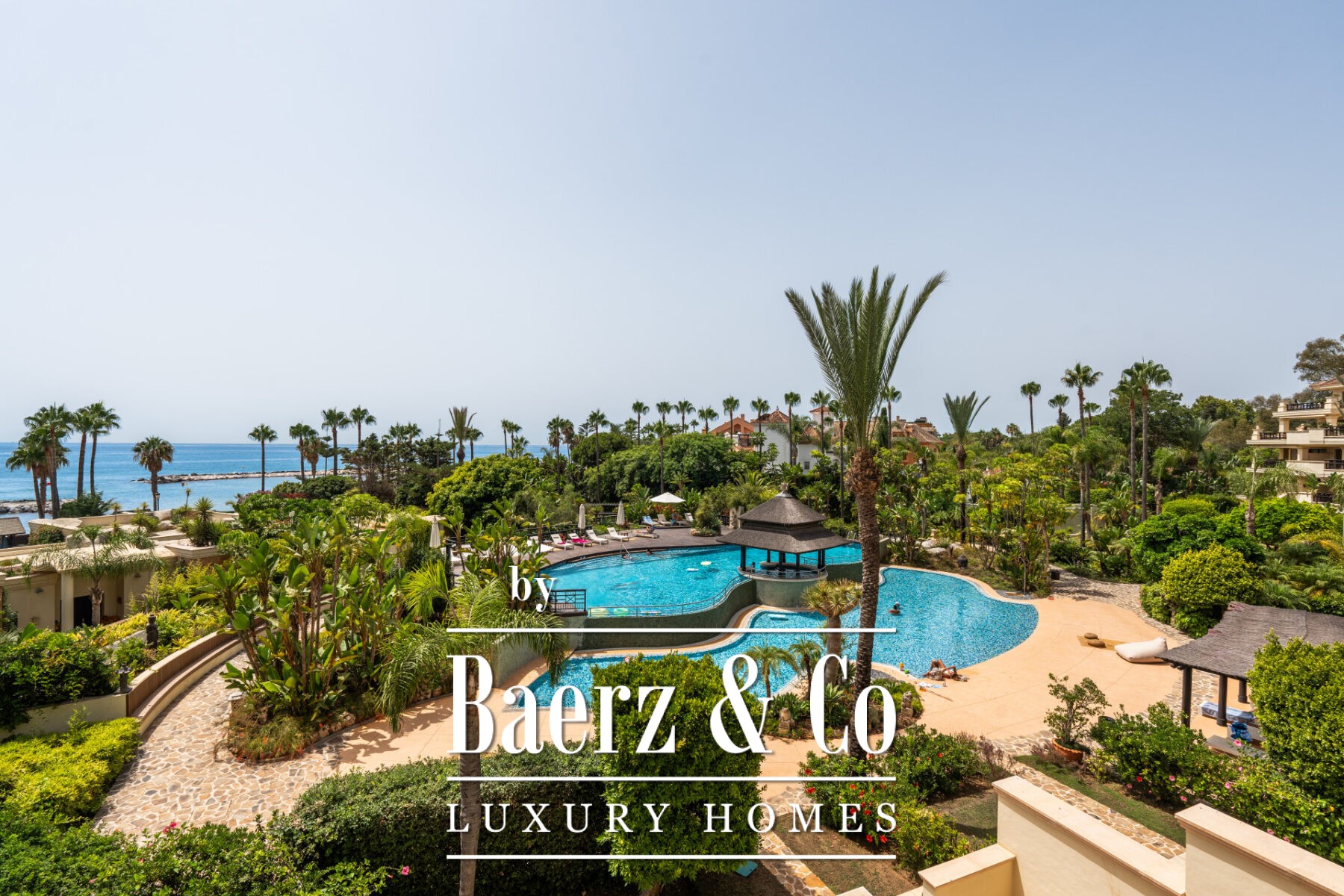 Dit appartement aan het strand in Marbella combineert royale leefruimte binnenshuis met de onweerstaanbare aantrekkingskracht van directe toegang tot de Middellandse Zee. Met 394 m² aan binnenruimte en 67 m² terrassen bevindt deze woning op de eerste verdieping zich op het zuidwesten, waardoor het huis baadt in daglicht en u rustgevende uitzichten op de zonsondergang over zee ervaart. Het adres is gelegen in een van Marbella’s meest besloten kustgebieden, op korte afstand van Puerto Banús, vermaarde restaurants, designerboetieks en alle essentiële voorzieningen.