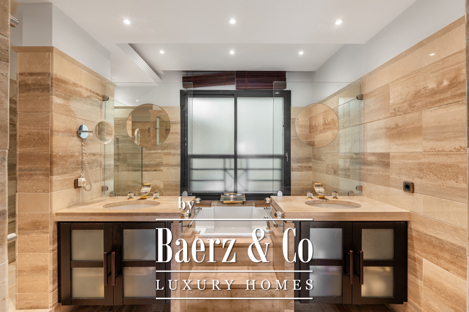 Het hart van het appartement bestaat uit drie slaapkamers, elk met een eigen badkamer. De master suite beschikt over een aparte inloopkast en een privéterras, met een adembenemend uitzicht over zee. Twee extra gastentoiletten zorgen voor extra comfort voor bewoners en gasten.