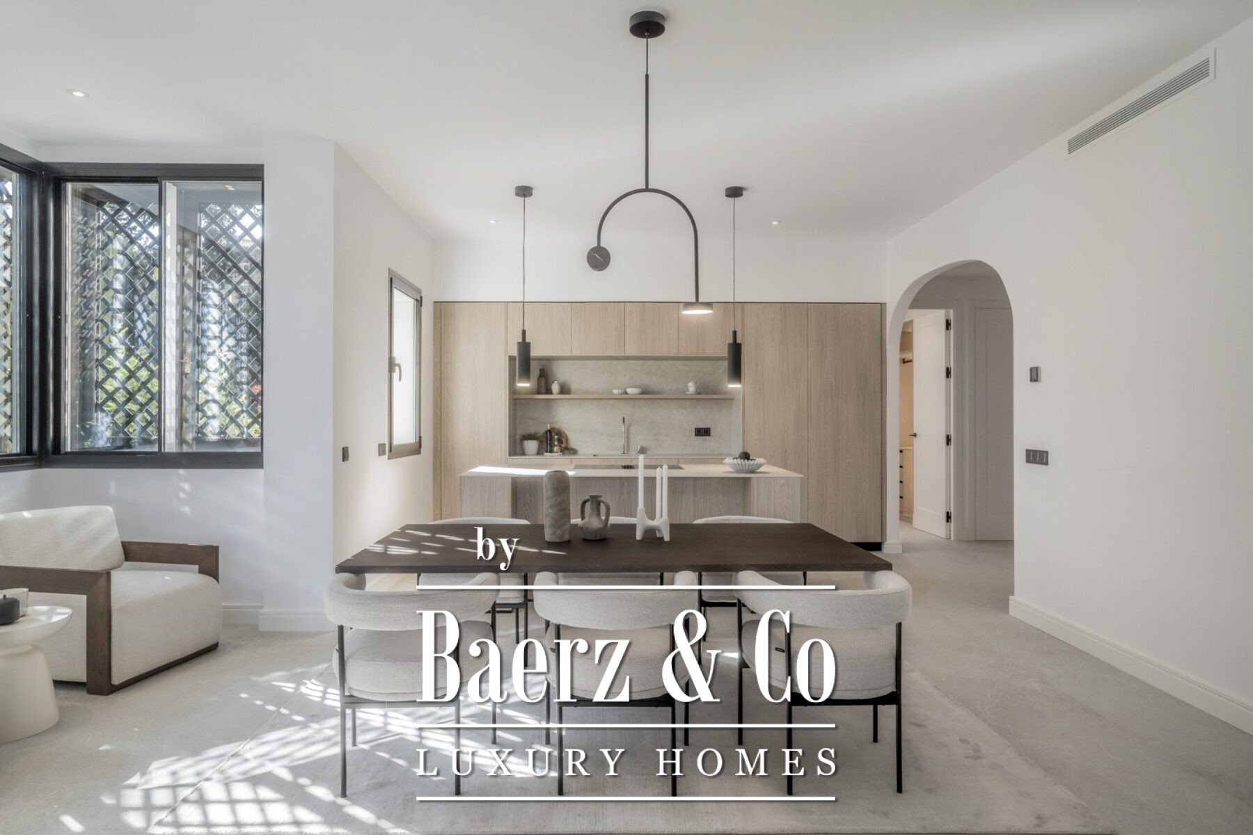 Appartement Marbella is ideaal gelegen in Sierra Blanca, waar vakmanschap en moeiteloze elegantie centraal staan. De woonkamer onderscheidt zich door natuurlijke texturen, op maat gemaakte houtafwerking, hoge plafonds en een open designkeuken voorzien van Miele-apparatuur. Marmeren werkbladen, warme houtaccenten en een geïntegreerde wijnklimaatkast creëren een keuken die stijlvol én functioneel is, ontworpen voor culinair genieten en sociale avonden.